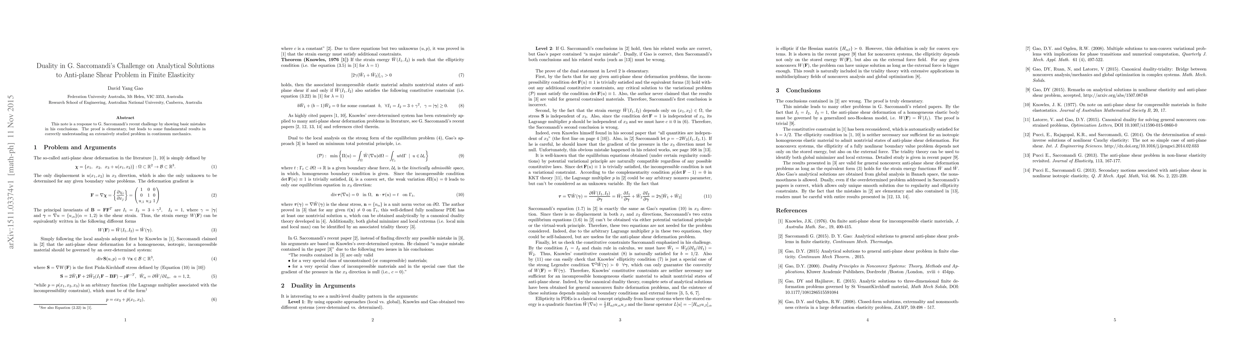 This note is a response to recent challenge by showing basic mistakes in his conclusions. The proof is elementary, but leads to some fundamental results in correctly understanding an extensively studied problem in continuum mechanics.
