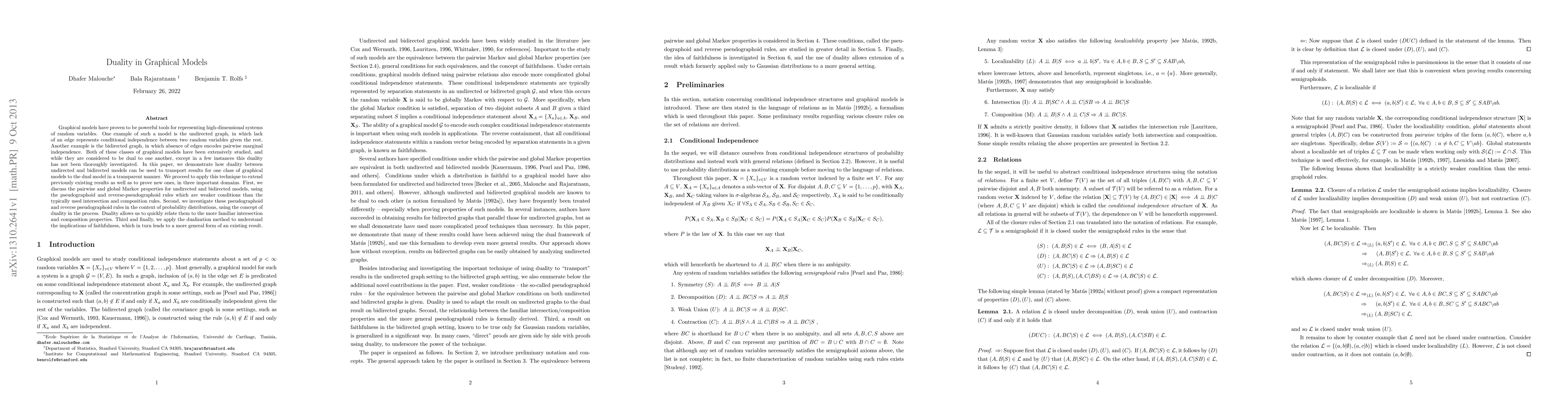 This paper explores the duality between undirected and bidirected graphical models, demonstrating how results from one class can be transparently transported to the dual model. The authors apply this technique to extend existing results and prove new ones, focusing on Markov properties, pseudographoid rules, and implications of faithfulness in probability distributions.