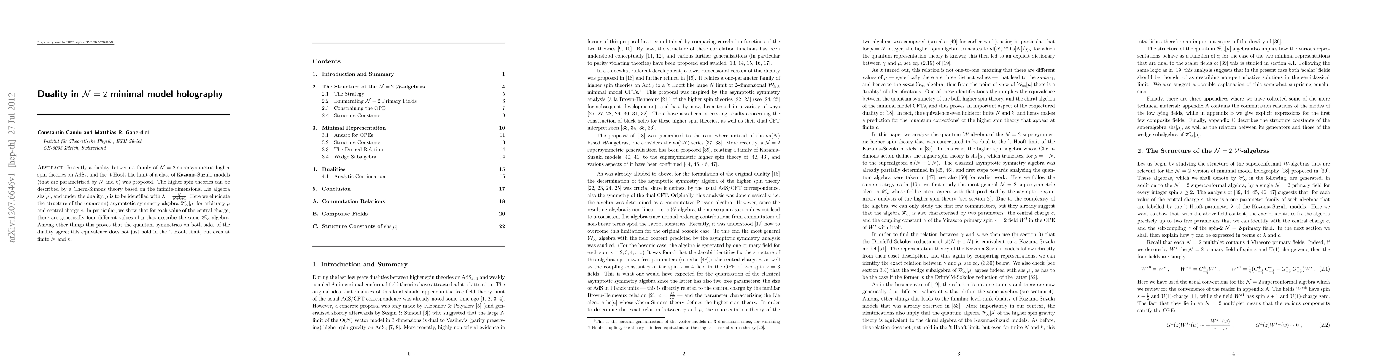 Recently a duality between a family of \mathcal{N}=2 supersymmetric higher spin theories on AdS3, and the 't Hooft like limit of a class of Kazama-Suzuki models (that are parametrised by N and k) was proposed. The higher spin theories can be described by a Chern-Simons theory based on the infinite-dimensional Lie algebra shs[\mu], and under the duality, \mu is to be identified with \lambda=N/(N+k+1). Here we elucidate the structure of the (quantum) asymptotic symmetry algebra sW_{\infty}[\mu] for arbitrary \mu and central charge c. In particular, we show that for each value of the central charge, there are generically four different values of \mu that describe the same sW_{\infty} algebra. Among other things this proves that the quantum symmetries on both sides of the duality agree; this equivalence does not just hold in the 't Hooft limit, but even at finite N and k.