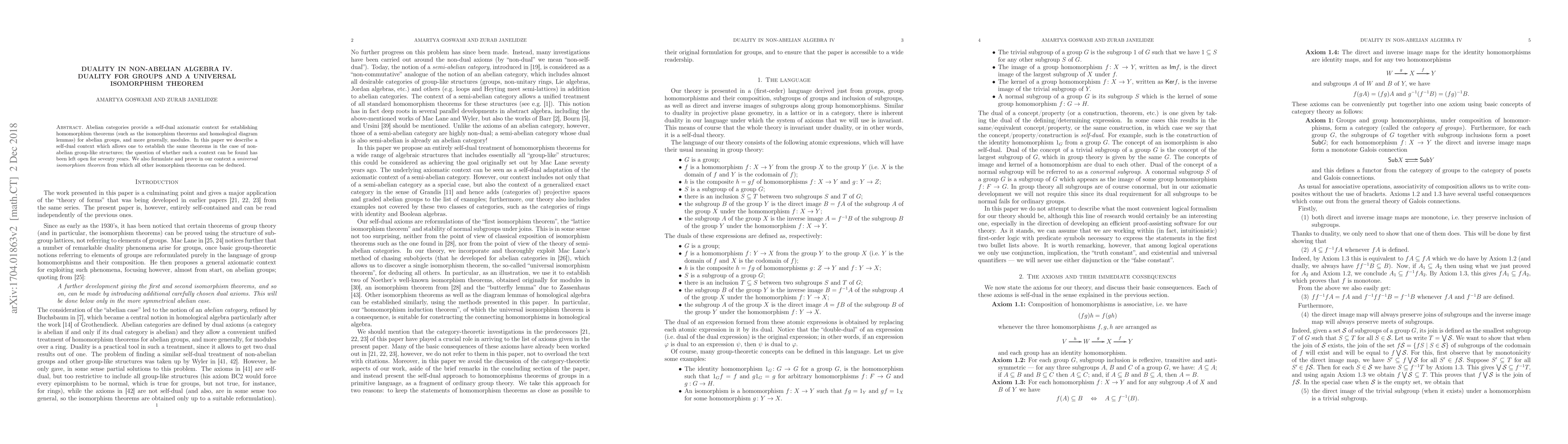 Abelian categories provide a self-dual axiomatic context for establishing homomorphism theorems (such as the isomorphism theorems and homological diagram lemmas) for abelian groups, and more generally, modules. In this paper we describe a self-dual context which allows one to establish the same theorems in the case of non-abelian group-like structures; the question of whether such a context can be found has been left open for seventy years. We also formulate and prove in our context a universal isomorphism theorem from which all other isomorphism theorems can be deduced.