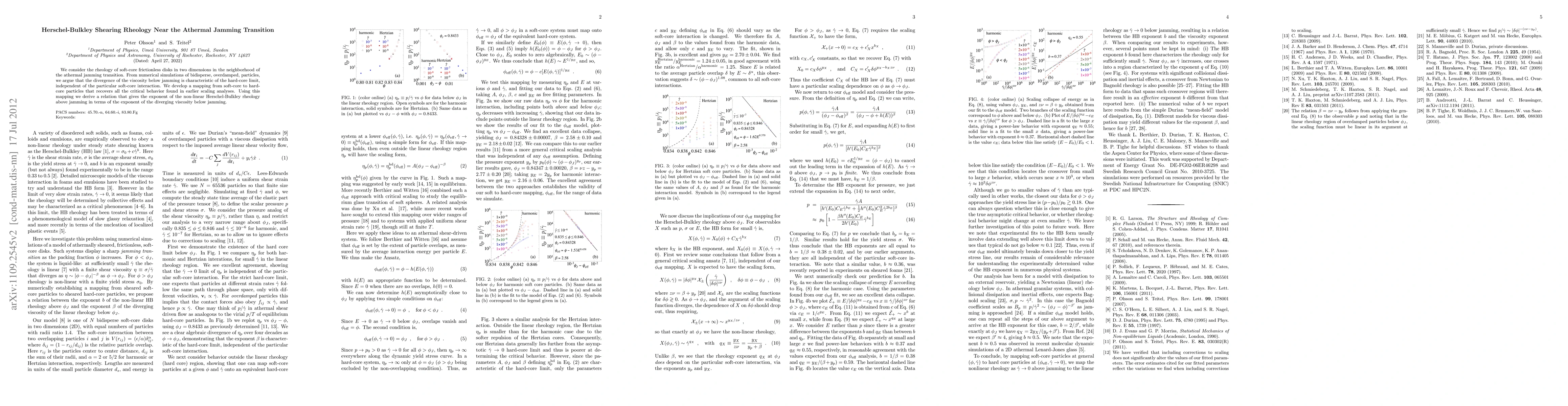 This paper explores the rheology of frictionless disks near the athermal jamming transition, demonstrating that viscosity divergence below jamming mirrors hard-core behavior, regardless of soft-core interactions. It establishes a duality relation linking the Herschel-Bulkley exponent above jamming to the viscosity divergence exponent below jamming.