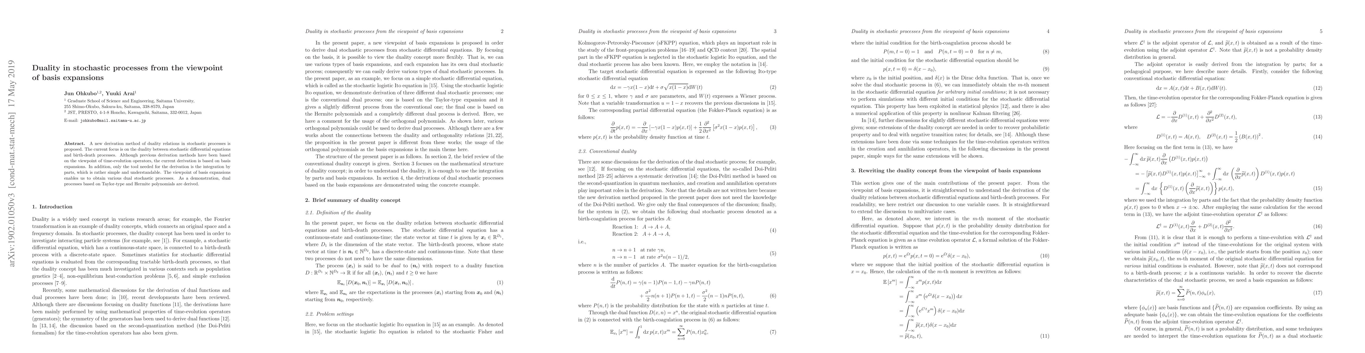 A new method for deriving duality relations in stochastic processes is proposed using basis expansions, enabling the creation of various dual stochastic processes with simple integration by parts.