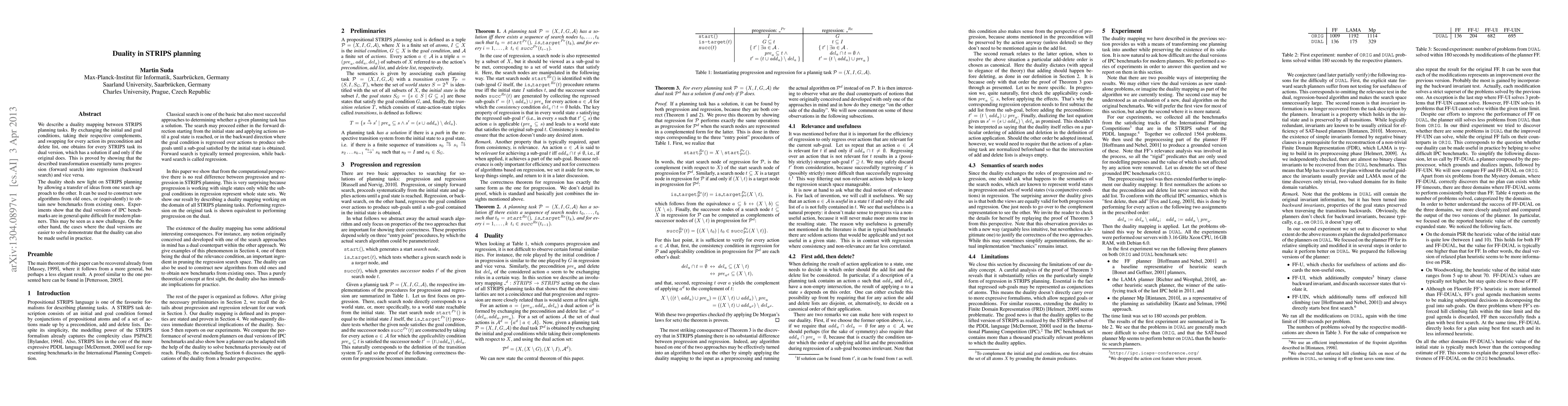 Researchers create a duality mapping between STRIPS planning tasks, showing that solving one task's dual version is equivalent to solving the original task. This discovery sheds new light on STRIPS planning, offering potential for transferring ideas from one search approach to another.