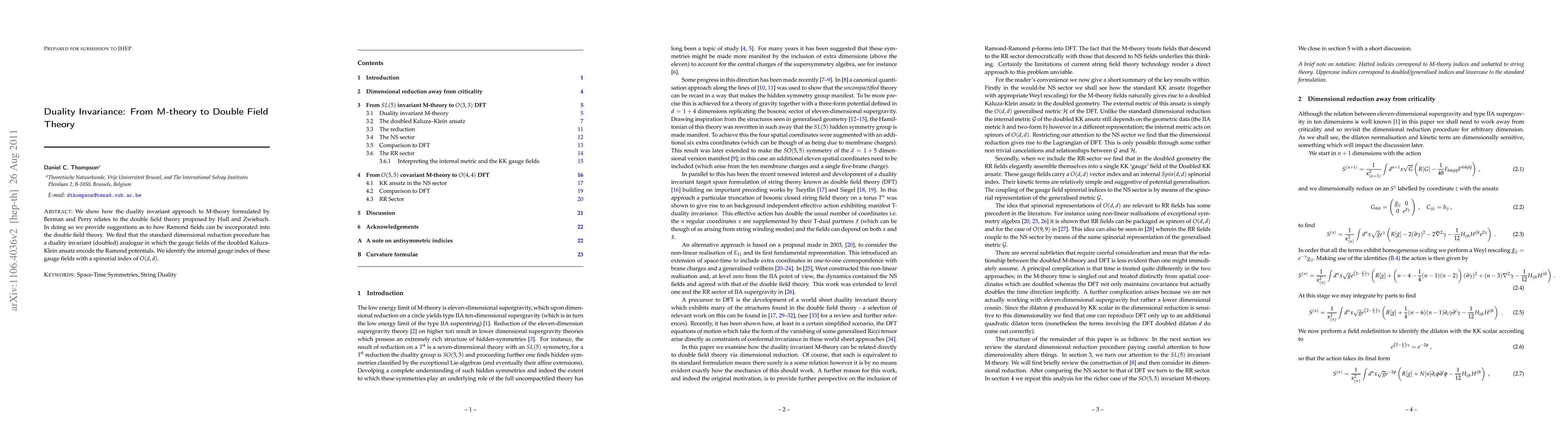 This paper demonstrates the connection between M-theory's duality invariant approach and double field theory, suggesting a method to incorporate Ramond fields. It reveals a duality invariant analogue of dimensional reduction where gauge fields encode Ramond potentials, linking internal gauge indices to O(d,d) spinorial indices.