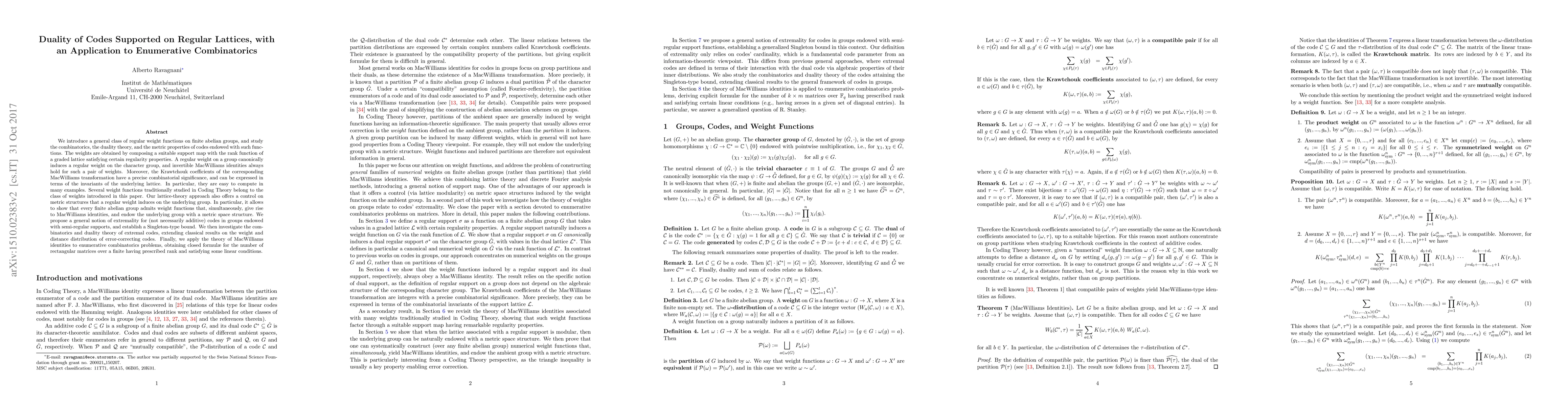 We introduce a general class of regular weight functions on finite abelian groups, and study the combinatorics, the duality theory, and the metric properties of codes endowed with such functions. The weights are obtained by composing a suitable support map with the rank function of a graded lattice satisfying certain regularity properties. A regular weight on a group canonically induces a regular weight on the character group, and invertible MacWilliams identities always hold for such a pair of weights. Moreover, the Krawtchouk coefficients of the corresponding MacWilliams transformation have a precise combinatorial significance, and can be expressed in terms of the invariants of the underlying lattice. In particular, they are easy to compute in many examples. Several weight functions traditionally studied in Coding Theory belong to the class of weights introduced in this paper. Our lattice-theory approach also offers a control on metric structures that a regular weight induces on the underlying group. In particular, it allows to show that every finite abelian group admits weight functions that, simultaneously, give rise to MacWilliams identities, and endow the underlying group with a metric space structure. We propose a general notion of extremality for (not necessarily additive) codes in groups endowed with semi-regular supports, and establish a Singleton-type bound. We then investigate the combinatorics and duality theory of extremal codes, extending classical results on the weight and distance distribution of error-correcting codes. Finally, we apply the theory of MacWilliams identities to enumerative combinatorics problems, obtaining closed formulae for the number of rectangular matrices over a finite having prescribed rank and satisfying some linear conditions.