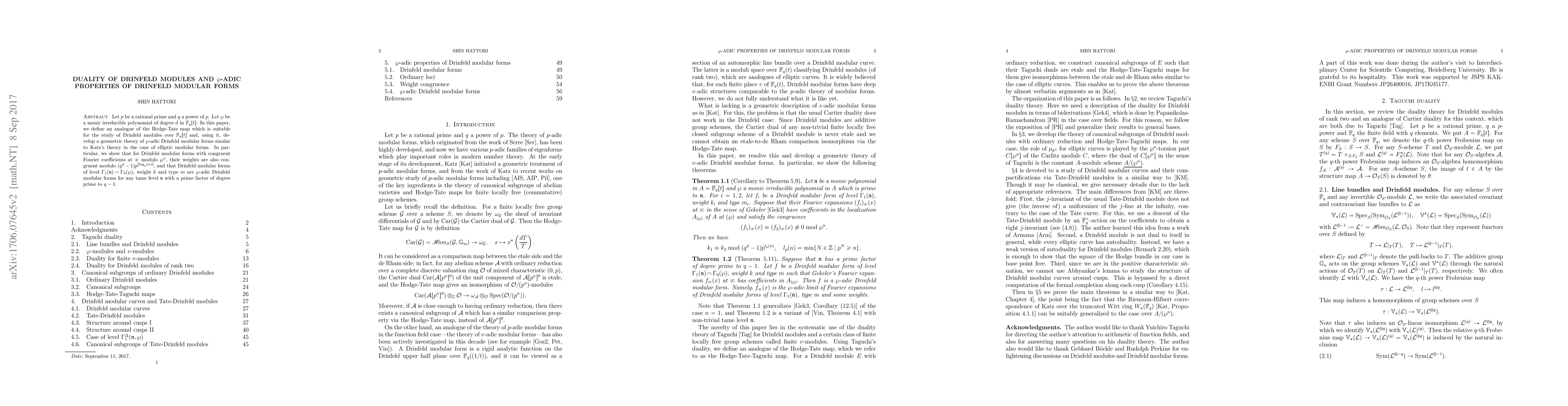 This paper establishes a geometric theory for $ p$-adic Drinfeld modular forms, showing that their weights have specific congruences modulo certain values when their Fourier coefficients at infinity are congruent.