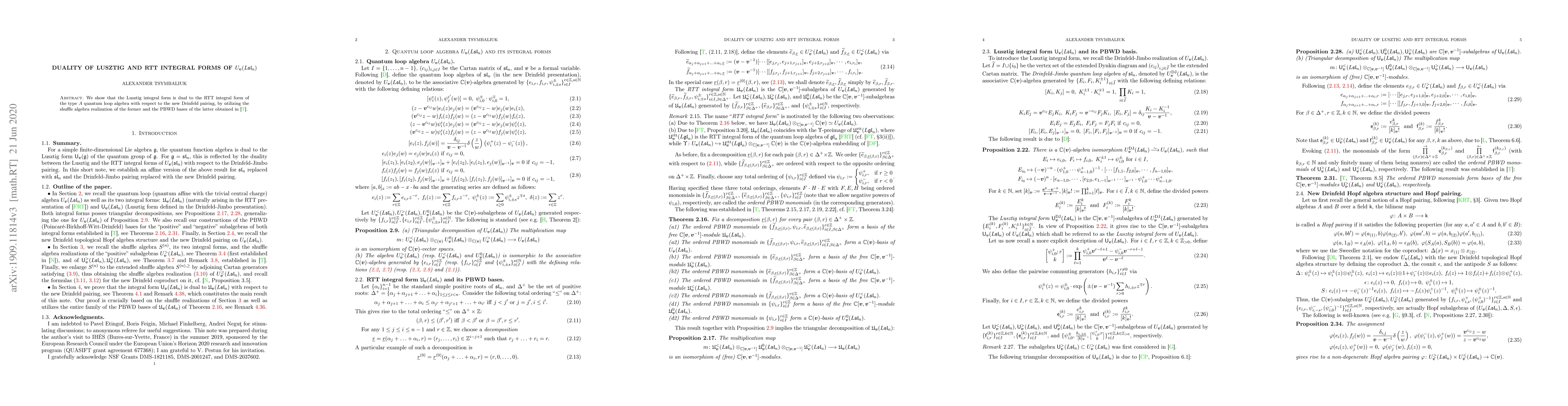 We show that the Lusztig integral form is dual to the RTT integral form of the type A quantum loop algebra with respect to the new Drinfeld pairing, by utilizing the shuffle algebra realization of the former and the PBWD bases of the latter obtained in arXiv:1808.09536.