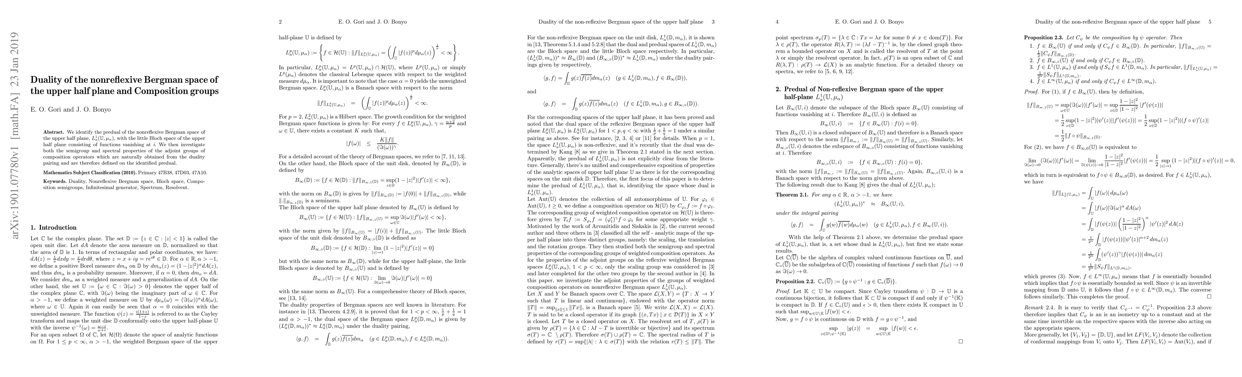 This paper identifies the predual of the nonreflexive Bergman space $L_a^1(\uP,\mu_{\al})$ with the little Bloch space vanishing at $i$. It further explores the semigroup and spectral properties of adjoint composition operator groups derived from this duality.