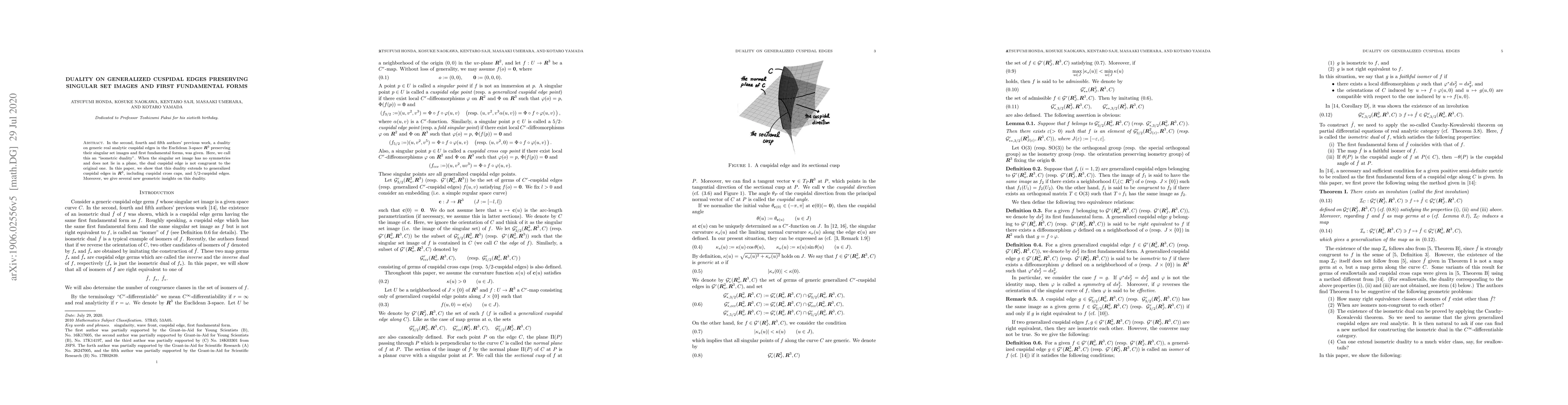 In the second, fourth and fifth authors' previous work, a duality on generic real analytic cuspidal edges in the Euclidean 3-space $\boldsymbol R^3$ preserving their singular set images and first fundamental forms, was given. Here, we call this an `isometric duality'. When the singular set image has no symmetries and does not lie in a plane, the dual cuspidal edge is not congruent to the original one. In this paper, we show that this duality extends to generalized cuspidal edges in $\boldsymbol R^3$, including cuspidal cross caps, and $5/2$-cuspidal edges. Moreover, we give several new geometric insights on this duality.