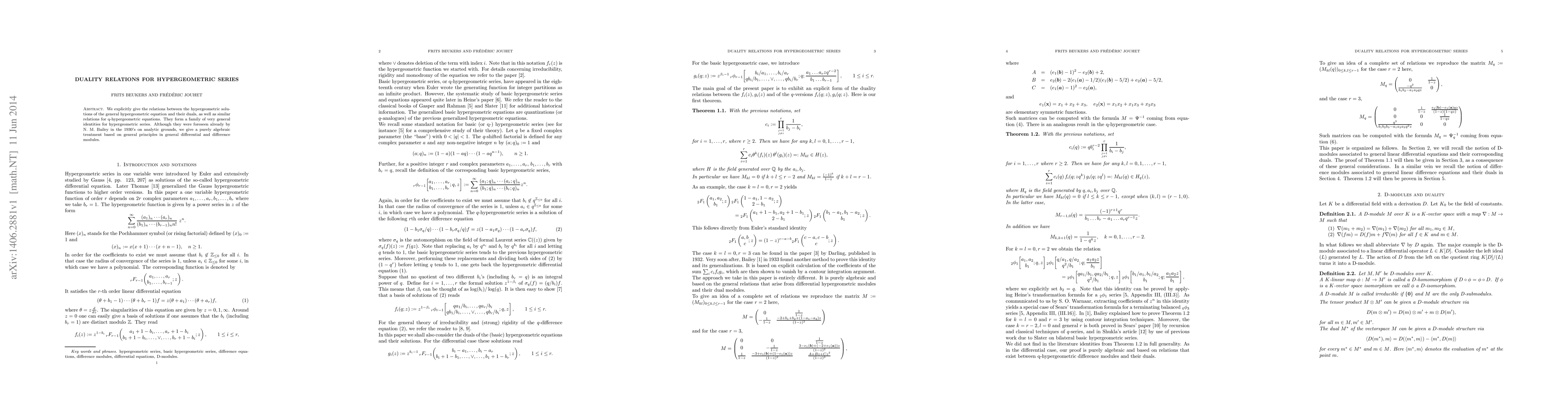 This paper presents explicit algebraic relations between hypergeometric solutions and their duals, extending to q-hypergeometric equations, based on general principles in differential and difference modules. These relations form a broad family of identities for hypergeometric series, previously anticipated by N. M. Bailey in the 1930s.