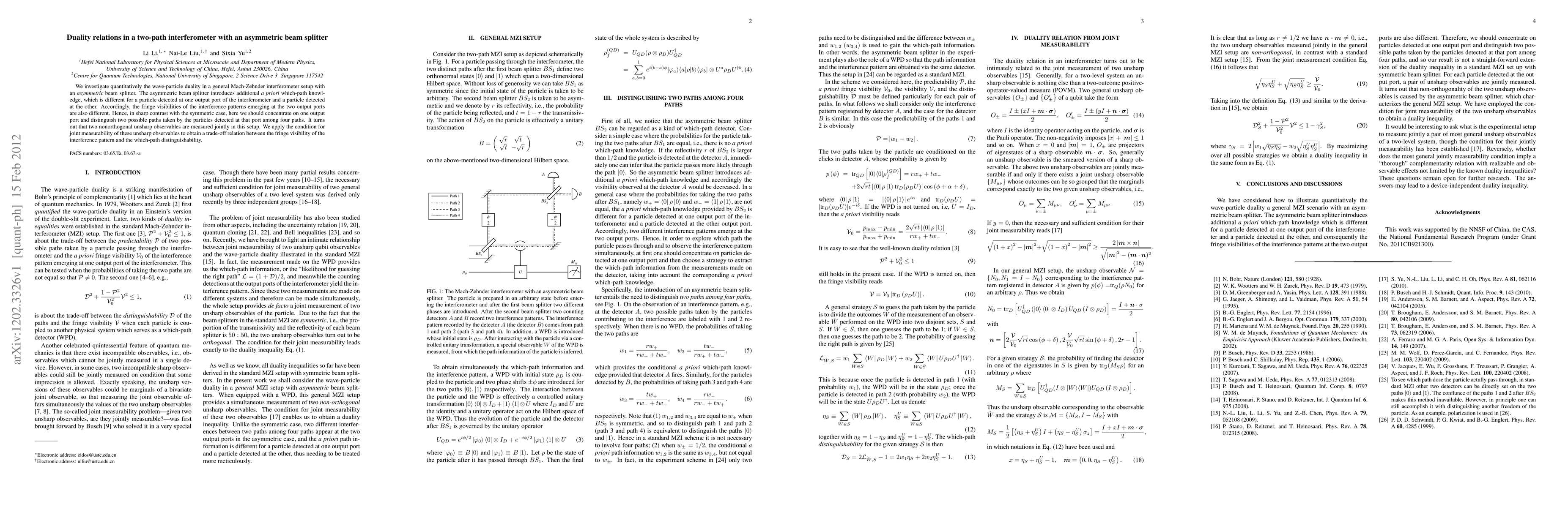 This paper explores wave-particle duality in a Mach-Zehnder interferometer with an asymmetric beam splitter, revealing differing fringe visibilities and which-path knowledge for particles detected at different output ports. The study derives a trade-off relation between interference pattern visibility and which-path distinguishability based on joint measurability conditions.