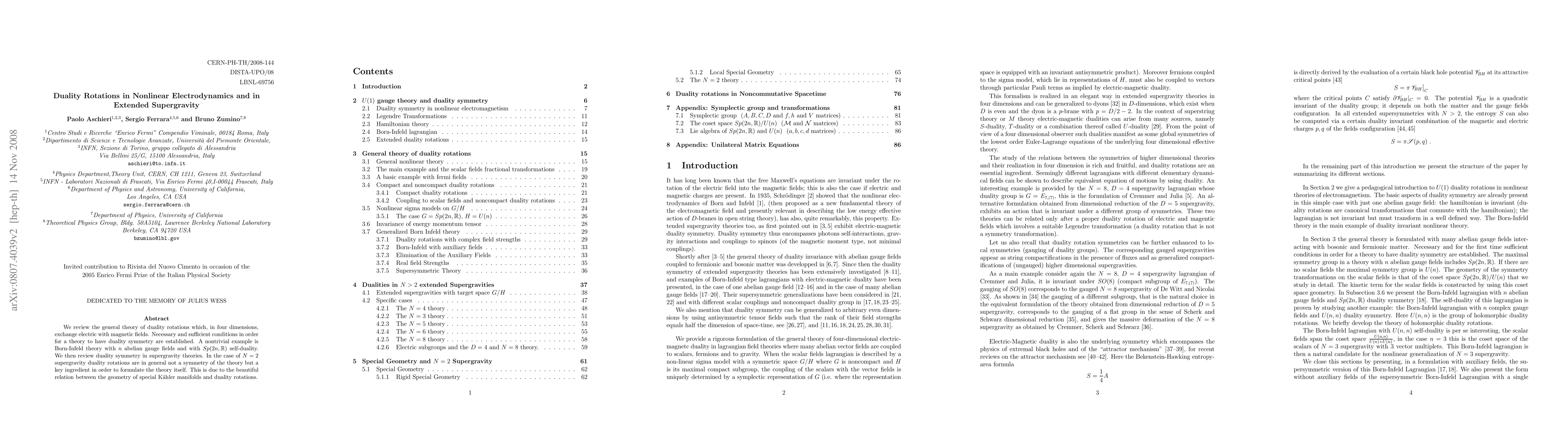 This paper reviews duality rotations in nonlinear electrodynamics, establishing conditions for duality symmetry, and explores their role in extended supergravity, particularly highlighting their importance in formulating N=2 supergravity through the geometry of special Kaehler manifolds.