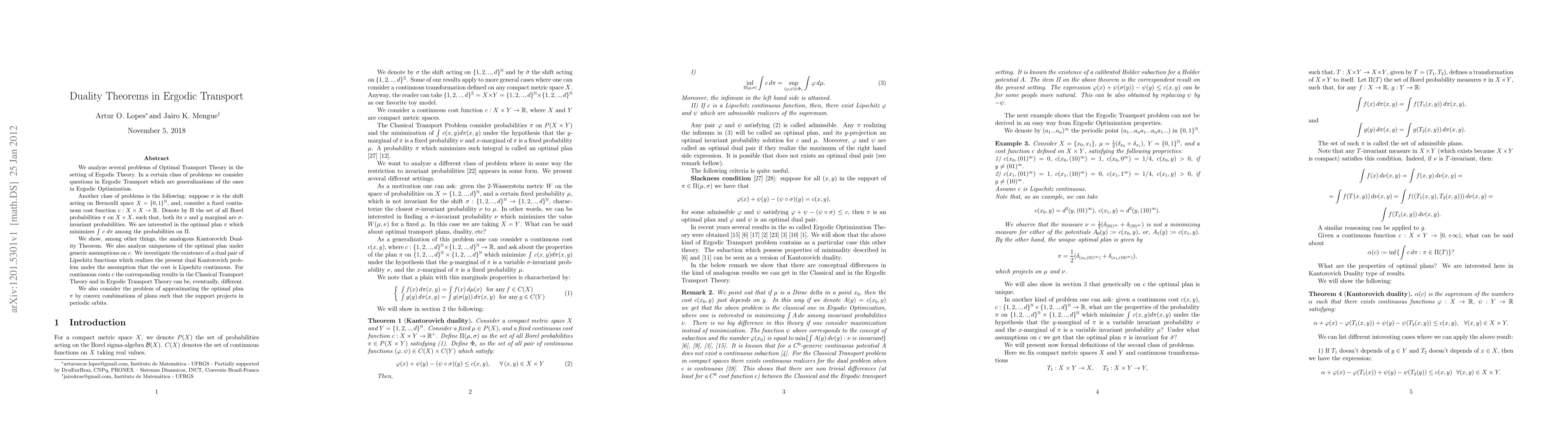 This paper explores Optimal Transport Theory within the framework of Ergodic Theory, focusing on the duality theorems and the existence of optimal transport plans under specific conditions. It demonstrates the analogous Kantorovich Duality Theorem and investigates the uniqueness and approximation of optimal plans, particularly for Lipschitz continuous costs.