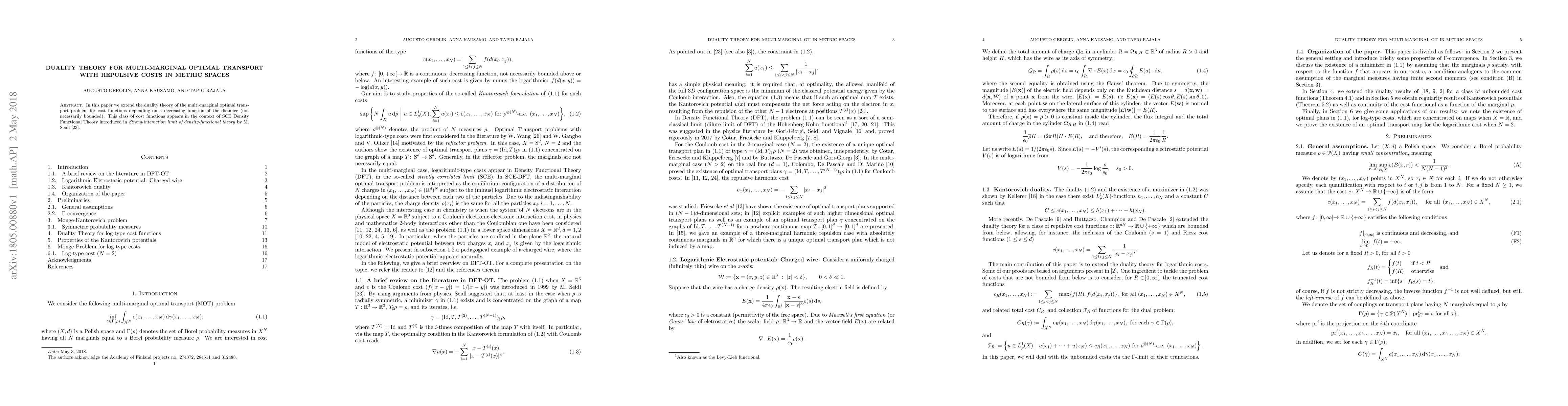 In this paper we extend the duality theory of the multi-marginal optimal transport problem for cost functions depending on a decreasing function of the distance (not necessarily bounded). This class of cost functions appears in the context of SCE Density Functional Theory introduced in "Strong-interaction limit of density-functional theory" by M. Seidl.