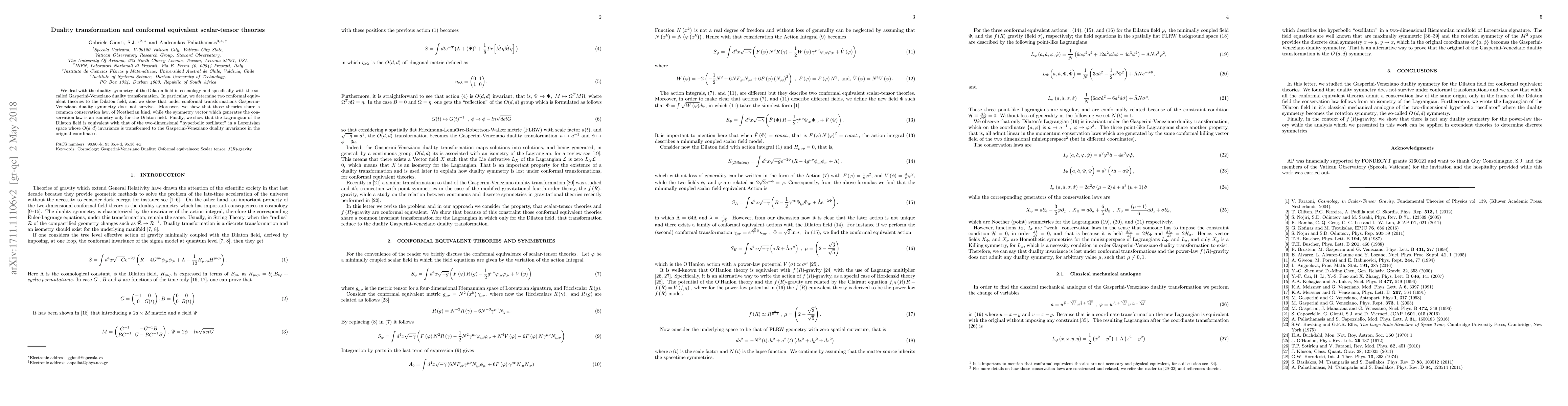This paper explores the duality symmetry of the Dilaton field in cosmology through the Gasperini-Veneziano transformation, identifying two conformal equivalent scalar-tensor theories. It reveals that the duality symmetry does not persist under conformal transformations and highlights a shared conservation law, though the symmetry vector is an isometry only for the Dilaton field.