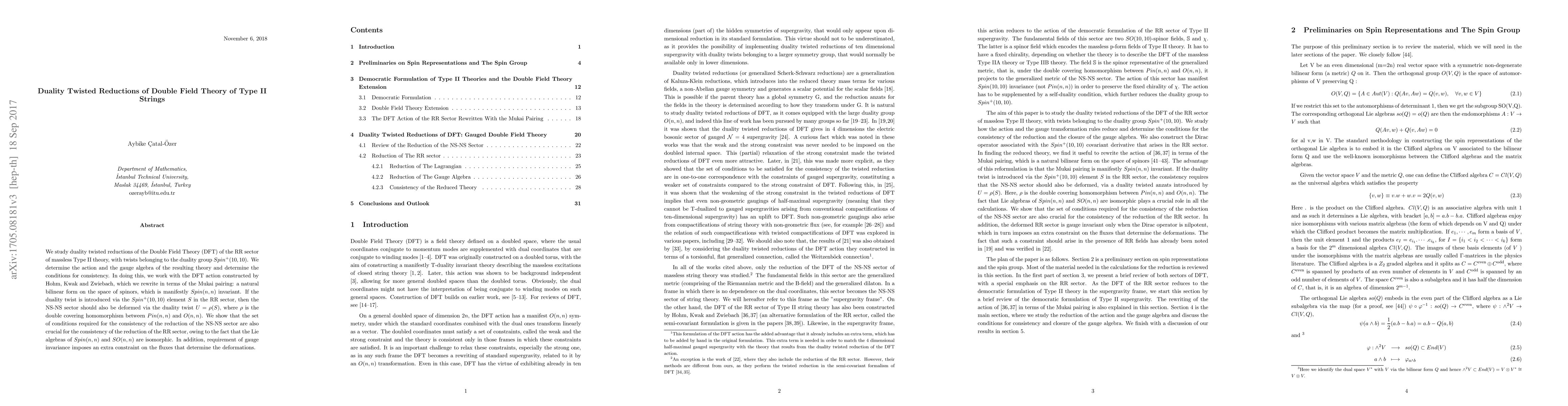 Researchers study duality twisted reductions of Double Field Theory for Type II strings, finding that consistency conditions for RR sector also apply to NS-NS sector due to isomorphic Lie algebras.