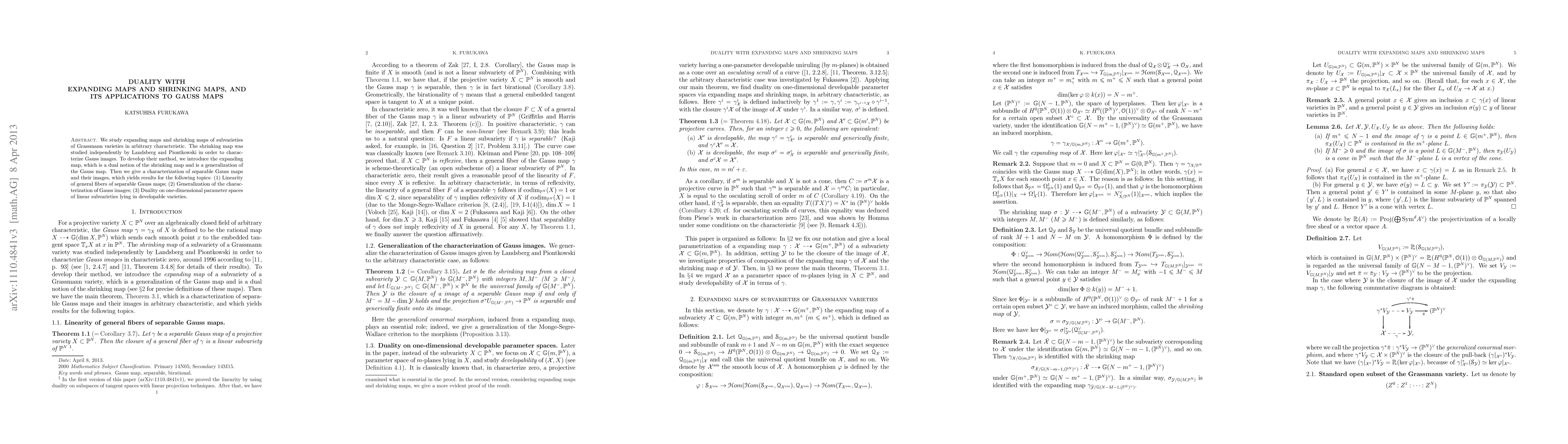 We study expanding maps and shrinking maps of subvarieties of Grassmann varieties in arbitrary characteristic. The shrinking map was studied independently by Landsberg and Piontkowski in order to characterize Gauss images. To develop their method, we introduce the expanding map, which is a dual notion of the shrinking map and is a generalization of the Gauss map. Then we give a characterization of separable Gauss maps and their images, which yields results for the following topics: (1) Linearity of general fibers of separable Gauss maps; (2) Generalization of the characterization of Gauss images; (3) Duality on one-dimensional parameter spaces of linear subvarieties lying in developable varieties.