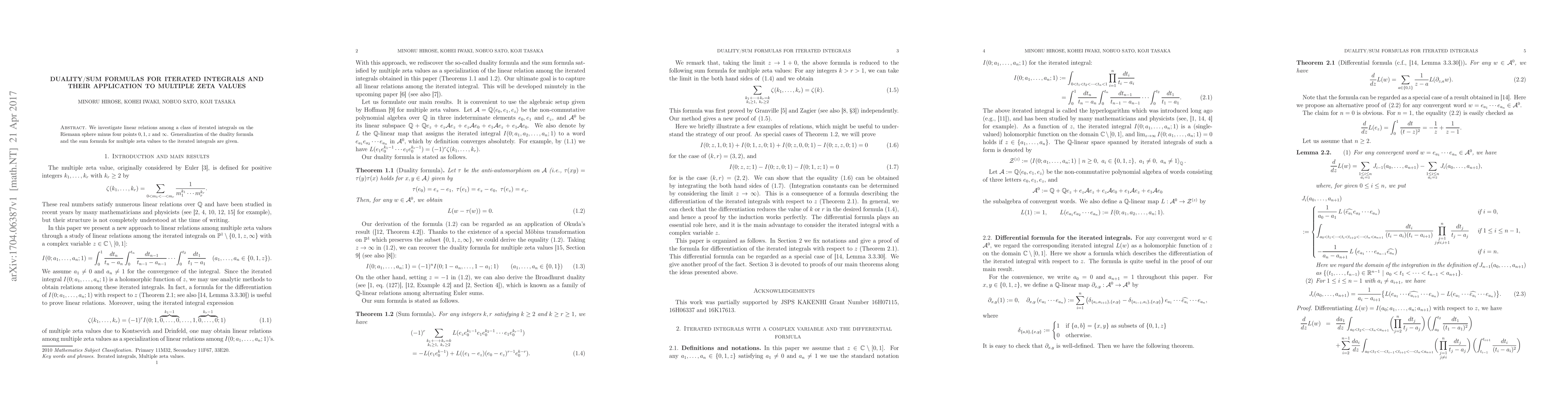We investigate linear relations among a class of iterated integrals on the Riemann sphere minus four points $0,1,z$ and $\infty$. Generalization of the duality formula and the sum formula for multiple zeta values to the iterated integrals are given.