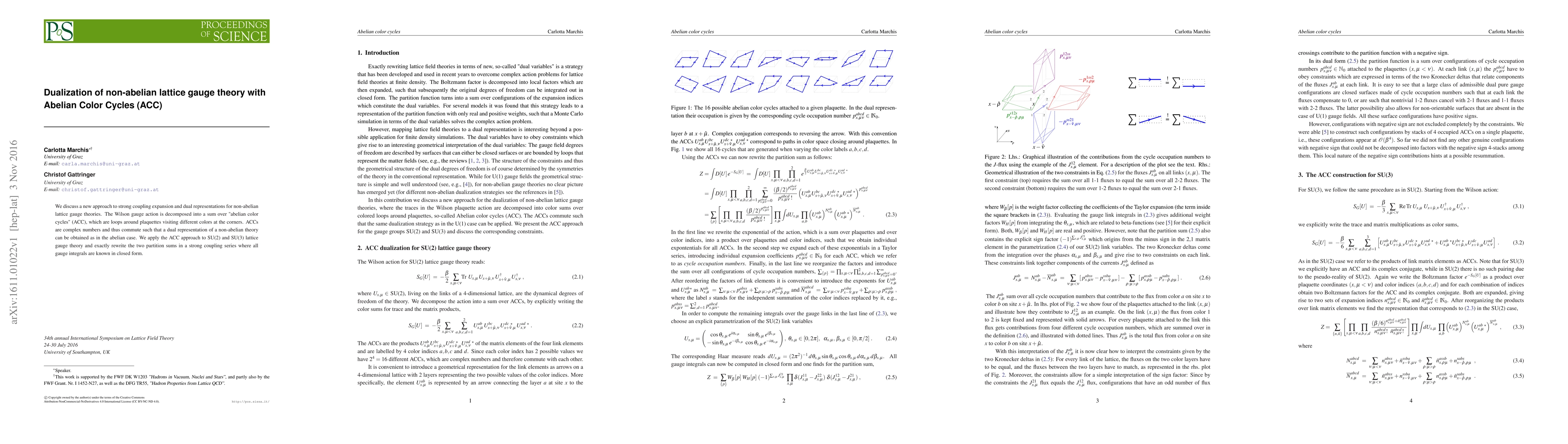 We discuss a new approach to strong coupling expansion and dual representations for non-abelian lattice gauge theories. The Wilson gauge action is decomposed into a sum over "abelian color cycles" (ACC), which are loops around plaquettes visiting different colors at the corners. ACCs are complex numbers and thus commute such that a dual representation of a non-abelian theory can be obtained as in the abelian case. We apply the ACC approach to SU(2) and SU(3) lattice gauge theory and exactly rewrite the two partition sums in a strong coupling series where all gauge integrals are known in closed form.
