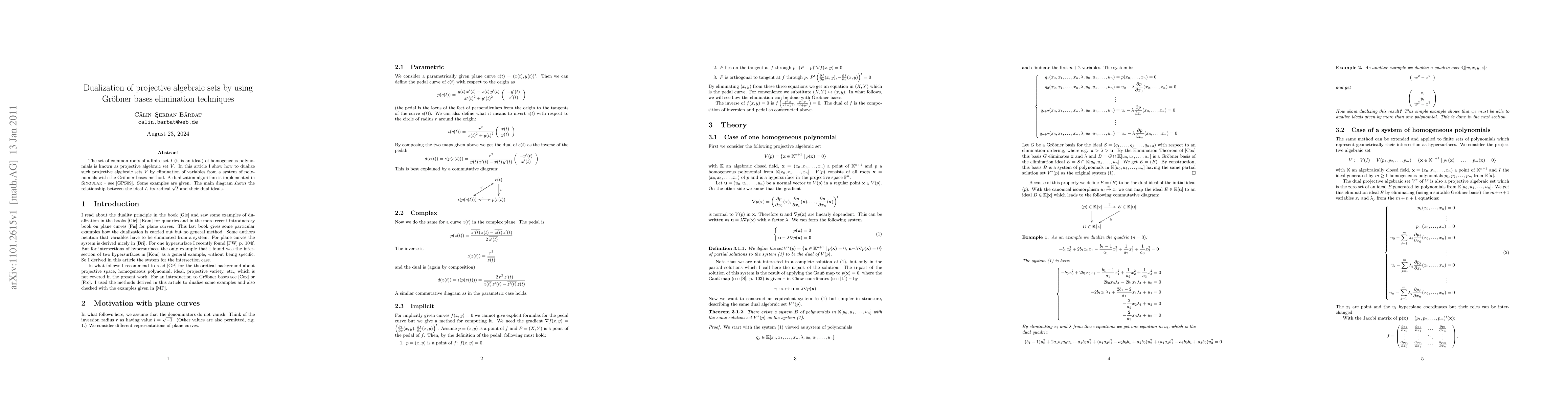 This paper proposes an algorithm for dualizing projective algebraic sets by using Gröbner bases and elimination techniques, implemented in Singular, and demonstrates its application through examples, highlighting the relationship between the ideal, its radical, and their dual ideals.
