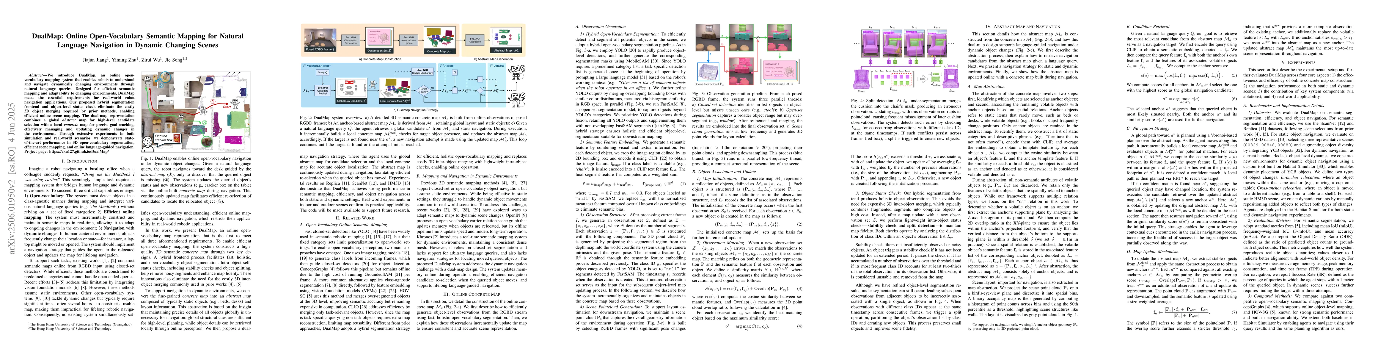 The research introduces DualMap, an online open-vocabulary mapping system for robot navigation using natural language queries. It features a hybrid segmentation frontend and object-level status checks to efficiently manage scene mapping in dynamic environments, combining a global abstract map with a local concrete map.
