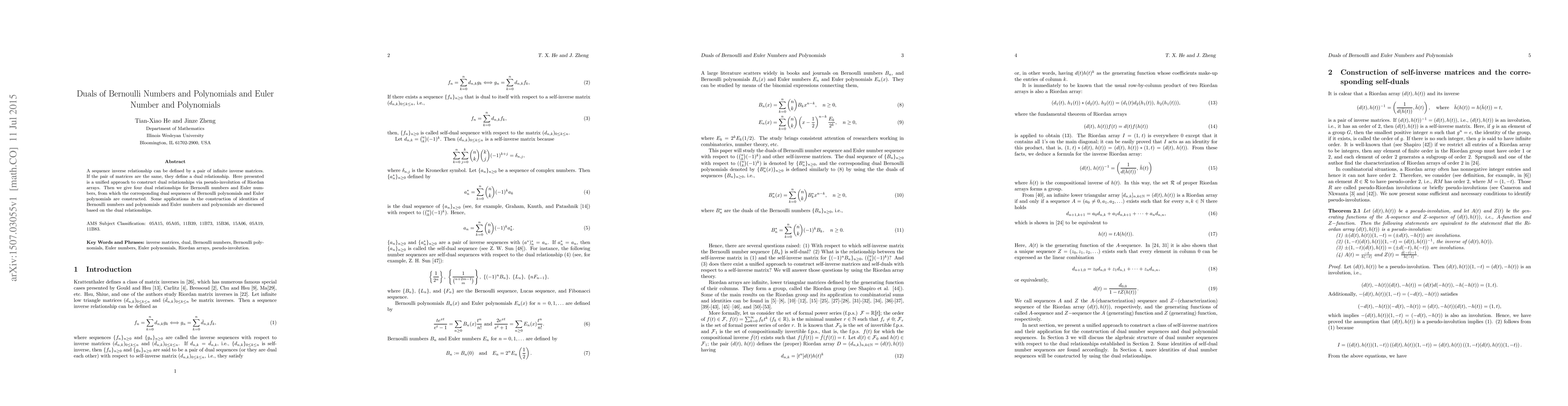 A sequence inverse relationship can be defined by a pair of infinite inverse matrices. If the pair of matrices are the same, they define a dual relationship. Here presented is a unified approach to construct dual relationships via pseudo-involution of Riordan arrays. Then we give four dual relationships for Bernoulli numbers and Euler numbers, from which the corresponding dual sequences of Bernoulli polynomials and Euler polynomials are constructed. Some applications in the construction of identities of Bernoulli numbers and polynomials and Euler numbers and polynomials are discussed based on the dual relationships.