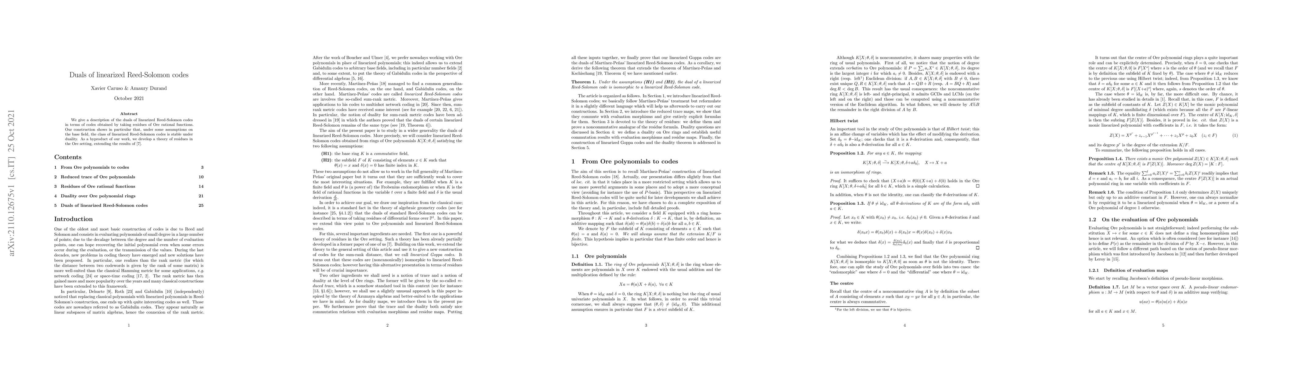 This paper describes the duals of linearized Reed-Solomon codes using residues of Ore rational functions, demonstrating that these codes are stable under duality under certain field conditions. Additionally, it develops a new theory of residues within the Ore setting.