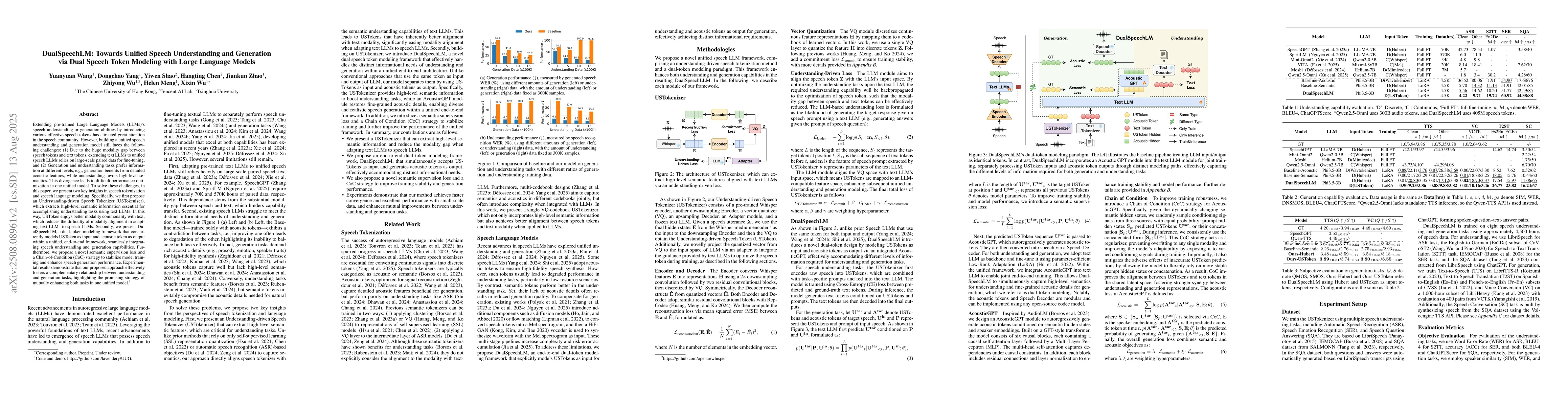 Extending pre-trained Large Language Models (LLMs)'s speech understanding or generation abilities by introducing various effective speech tokens has attracted great attention in the speech community. However, building a unified speech understanding and generation model still faces the following challenges: (1) Due to the huge modality gap between speech tokens and text tokens, extending text LLMs to unified speech LLMs relies on large-scale paired data for fine-tuning, and (2) Generation and understanding tasks prefer information at different levels, e.g., generation benefits from detailed acoustic features, while understanding favors high-level semantics. This divergence leads to difficult performance optimization in one unified model. To solve these challenges, in this paper, we present two key insights in speech tokenization and speech language modeling. Specifically, we first propose an Understanding-driven Speech Tokenizer (USTokenizer), which extracts high-level semantic information essential for accomplishing understanding tasks using text LLMs. In this way, USToken enjoys better modality commonality with text, which reduces the difficulty of modality alignment in adapting text LLMs to speech LLMs. Secondly, we present DualSpeechLM, a dual-token modeling framework that concurrently models USToken as input and acoustic token as output within a unified, end-to-end framework, seamlessly integrating speech understanding and generation capabilities. Furthermore, we propose a novel semantic supervision loss and a Chain-of-Condition (CoC) strategy to stabilize model training and enhance speech generation performance. Experimental results demonstrate that our proposed approach effectively fosters a complementary relationship between understanding and generation tasks, highlighting the promising strategy of mutually enhancing both tasks in one unified model.