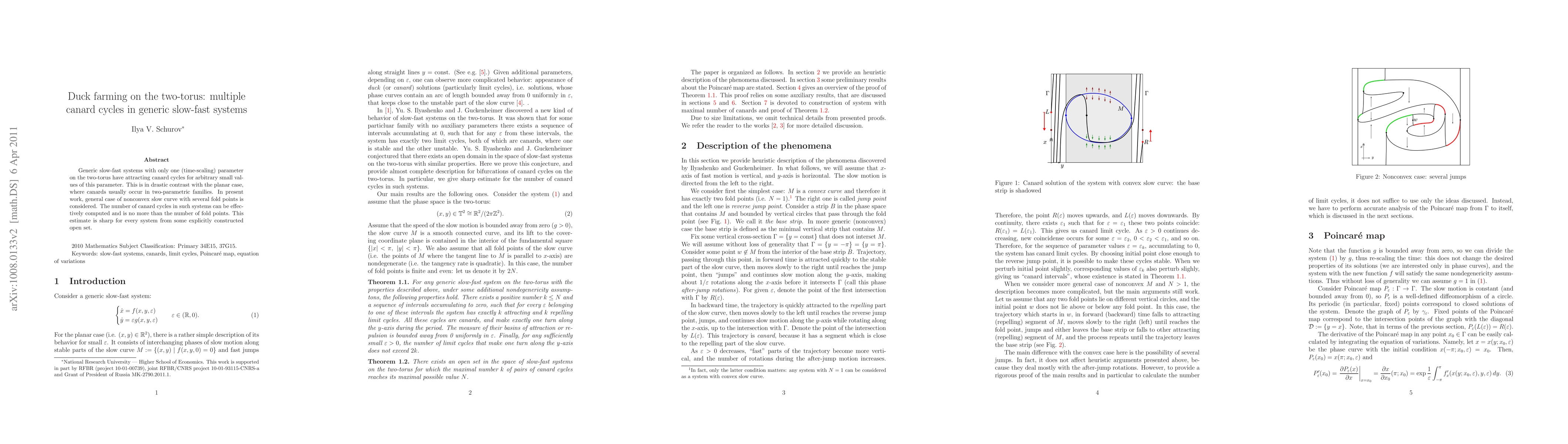 Generic slow-fast systems with only one (time-scaling) parameter on the two-torus have attracting canard cycles for arbitrary small values of this parameter. This is in drastic contrast with the planar case, where canards usually occur in two-parametric families. In present work, general case of nonconvex slow curve with several fold points is considered. The number of canard cycles in such systems can be effectively computed and is no more than the number of fold points. This estimate is sharp for every system from some explicitly constructed open set.