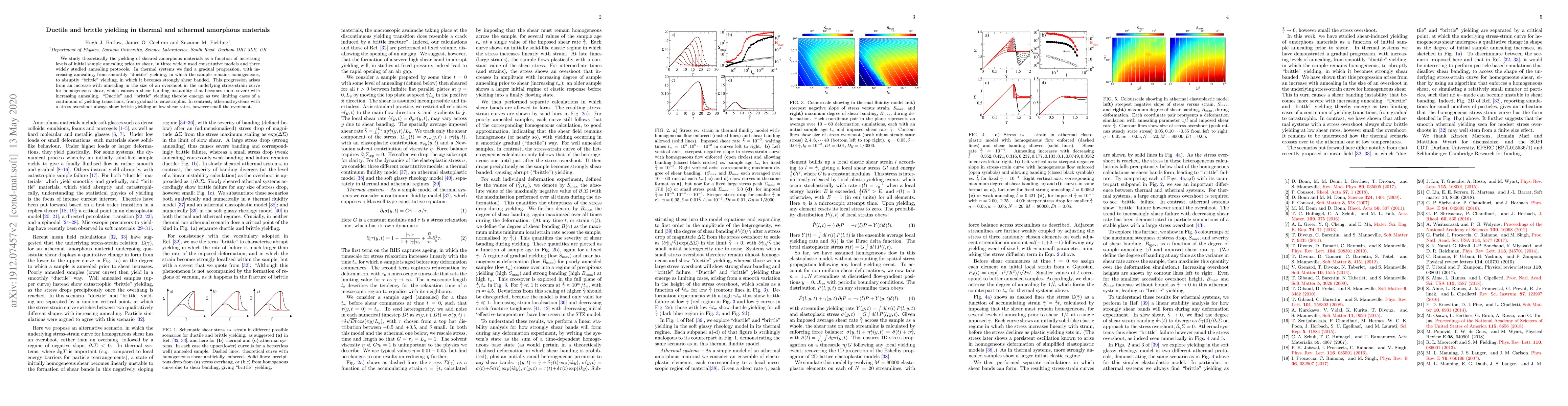 This research explores the yielding behavior of sheared amorphous materials under varying annealing conditions, revealing a continuum of yielding transitions from ductile to brittle yielding in thermal systems due to stress-strain curve overshoots. In contrast, athermal systems consistently exhibit brittle yielding regardless of annealing.