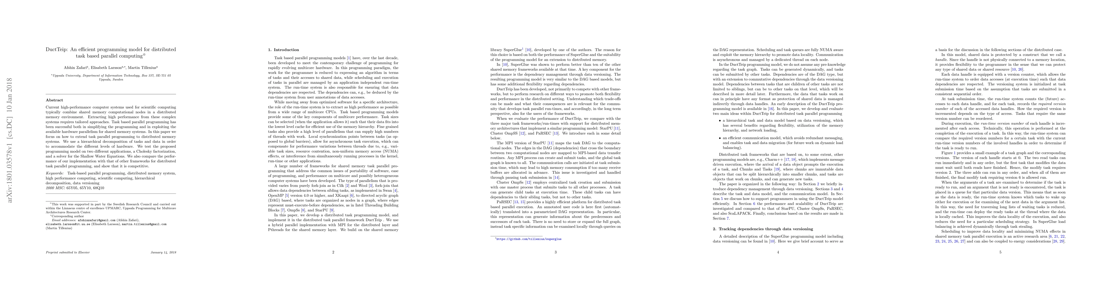 This paper introduces DuctTeip, a programming model for distributed task-based parallel computing, which extends task parallelism to distributed memory systems through hierarchical task and data decomposition. The model is tested on two applications and shown to be competitive with other distributed task parallel frameworks.