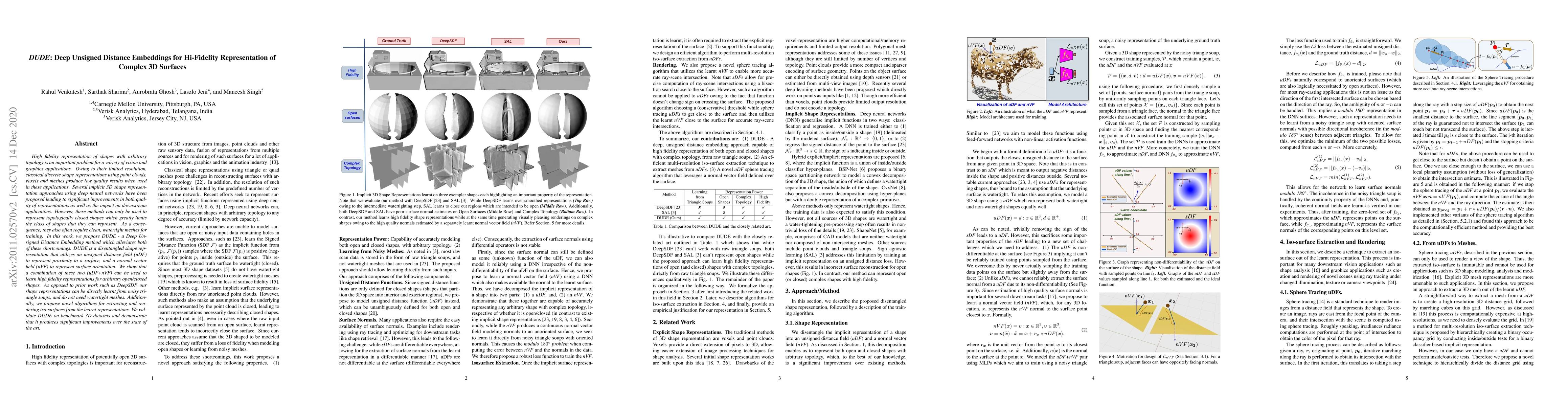 DUDE proposes a new method for representing complex 3D shapes with arbitrary topology, allowing for high-fidelity representations without requiring clean meshes or topologically closed shapes.