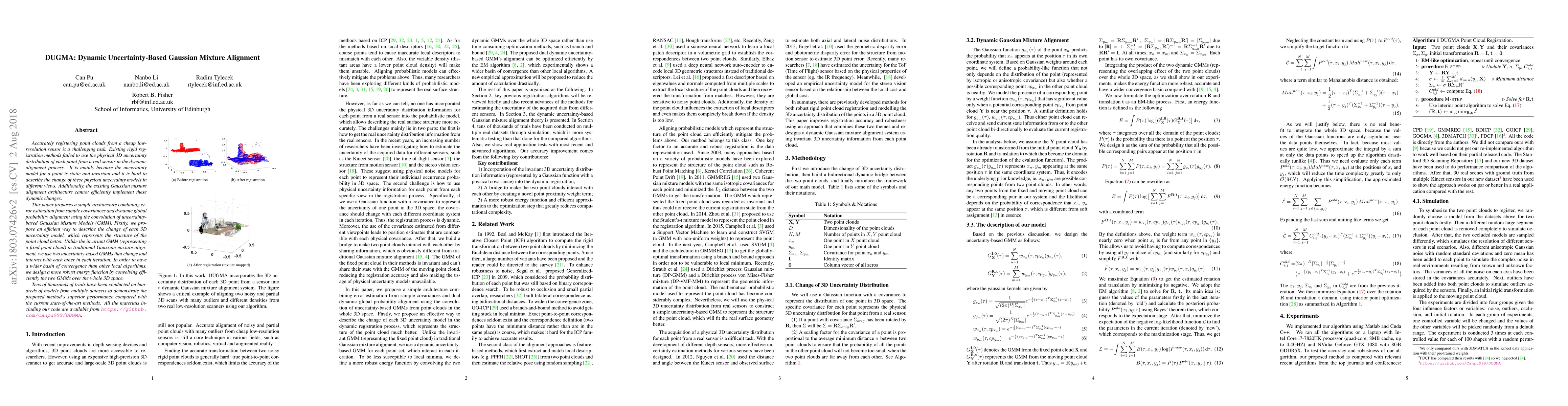 This paper proposes DUGMA, a dynamic uncertainty-based Gaussian Mixture Alignment method to accurately register point clouds from low-resolution sensors by incorporating the physical 3D uncertainty distribution of each point. The method uses dual dynamic GMMs that interact and change over iterations, enhancing the alignment process and achieving superior performance over existing methods.