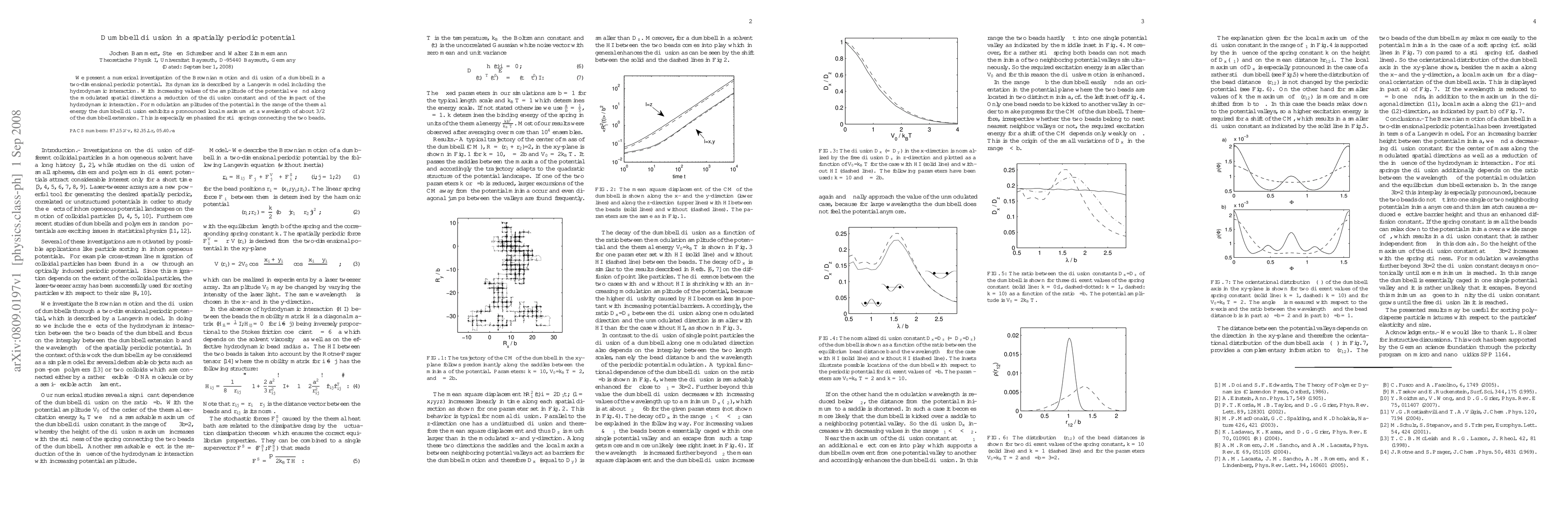 A study investigates how a dumbbell moves in a periodic potential, finding that its diffusion rate decreases with stronger potential modulation and reaches a maximum at a specific wavelength, which is more pronounced for stiff springs.