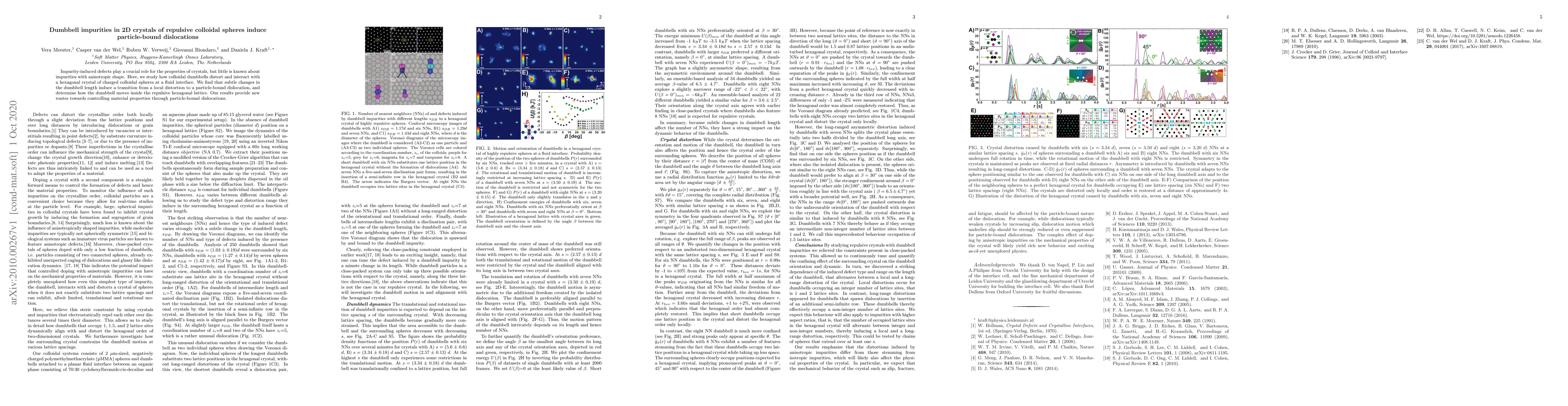 This study investigates how anisotropic dumbbell impurities distort a hexagonal crystal of repulsive colloidal spheres, revealing that changes in dumbbell length induce transitions from local distortions to particle-bound dislocations, offering new methods for controlling material properties via dislocations.