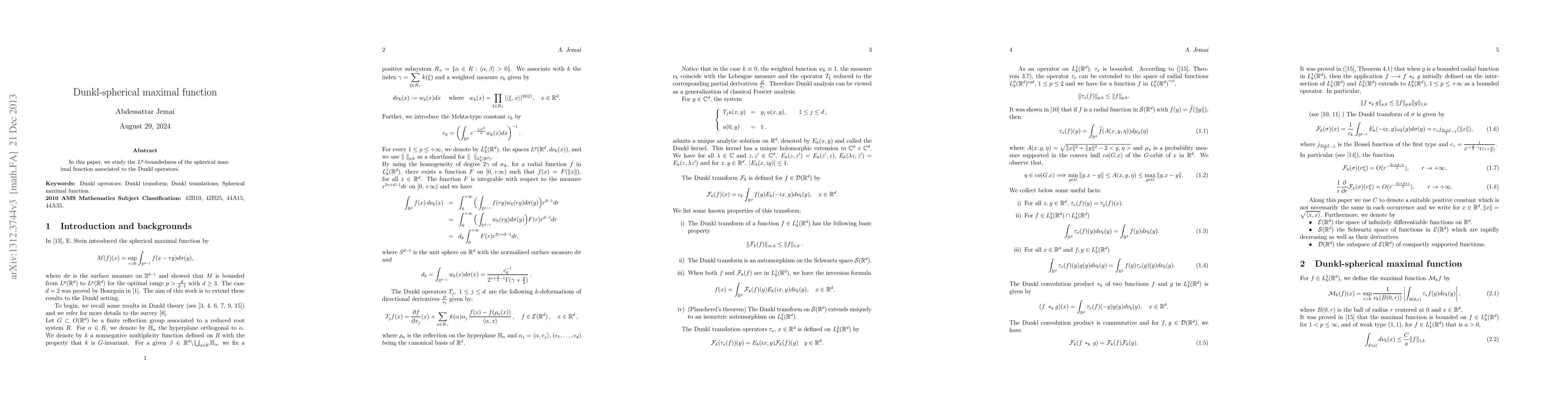 In this paper, we study the Lp-bondedness of the spherical maximal function associated to the Dunkl operators.