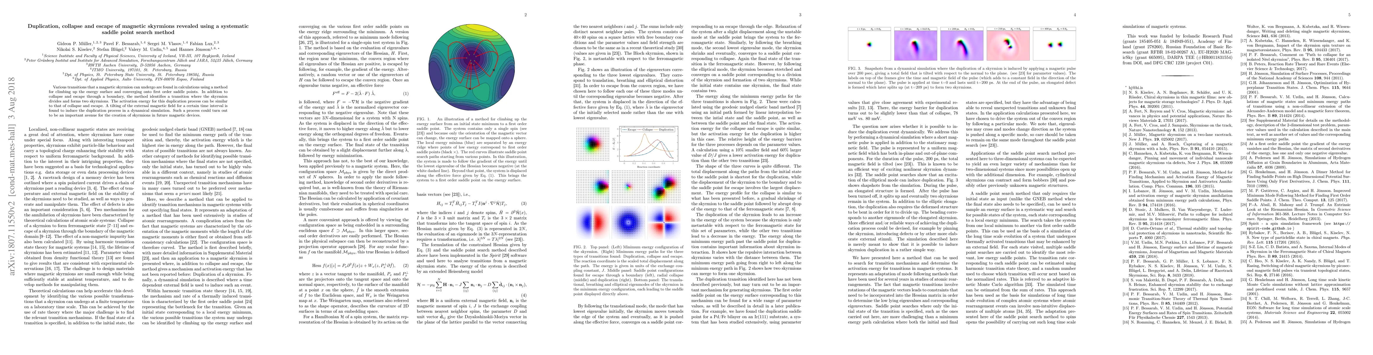 This research identifies new skyrmion behaviors - duplication, collapse, and escape - using a method to find saddle points on energy surfaces. A tilted magnetic field can induce duplication, potentially aiding future magnetic device creation.