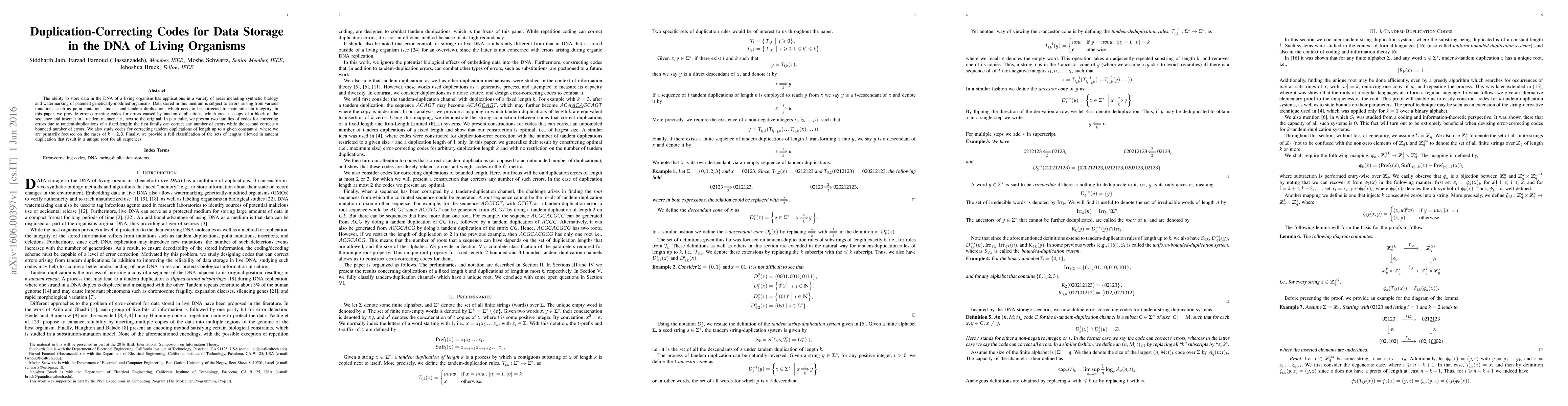 Researchers developed error-correcting codes for data stored in DNA, focusing on tandem duplications that can introduce errors, to maintain data integrity in applications like synthetic biology and watermarking of genetically-modified organisms.