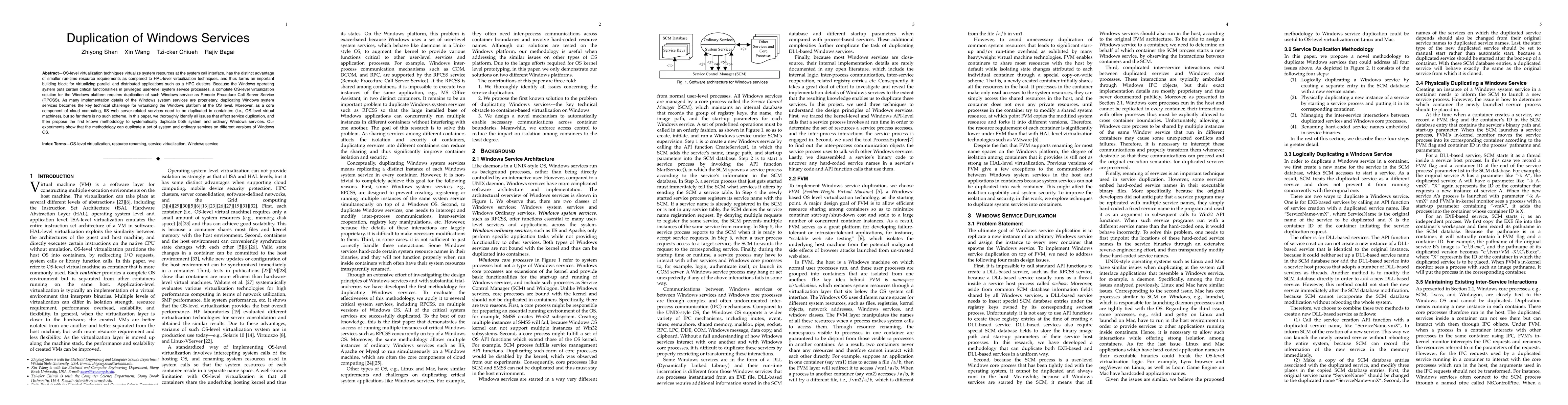 This paper explores the challenges of duplicating Windows system services for OS-level virtualization, proposing a methodology to systematically duplicate both system and ordinary services. Experimental results demonstrate the effectiveness of the proposed methodology across different Windows OS versions.