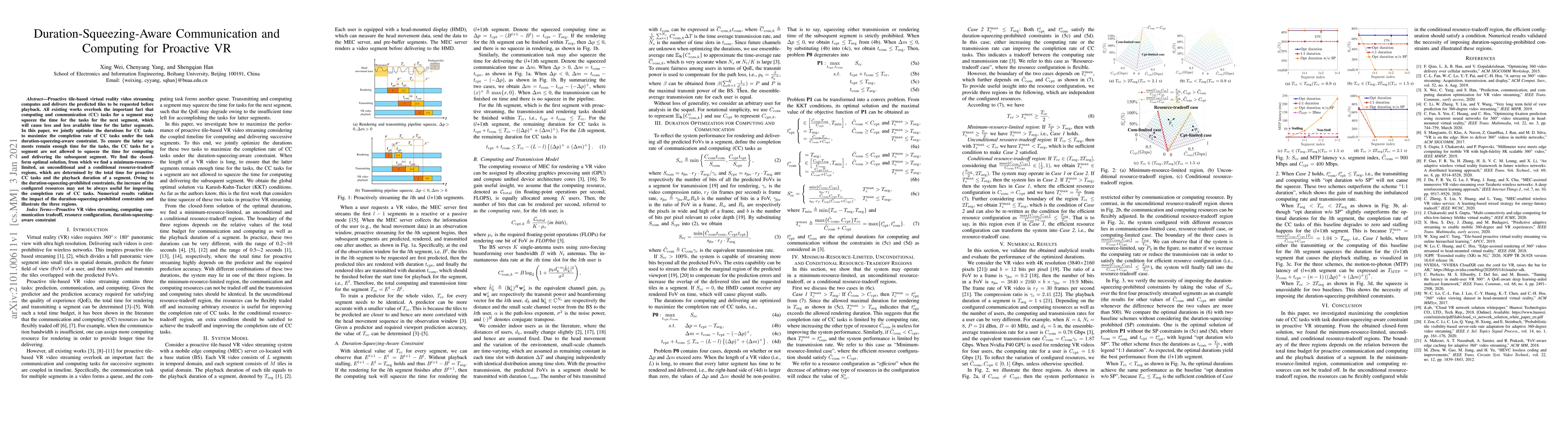 This paper optimizes virtual reality video streaming to maximize completion rate of computing and communication tasks while preventing time squeezing across segments, finding a minimum-resource-limited, unconditional, and conditional resource-tradeoff region.
