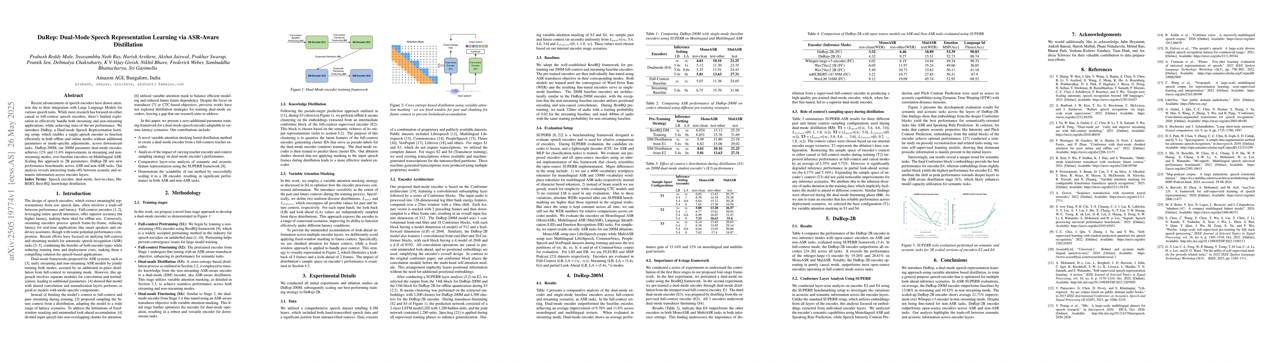 The research introduces DuRep, a dual-mode speech representation learning setup that enables a single speech encoder to function efficiently in both offline and online modes without additional parameters or mode-specific adjustments.