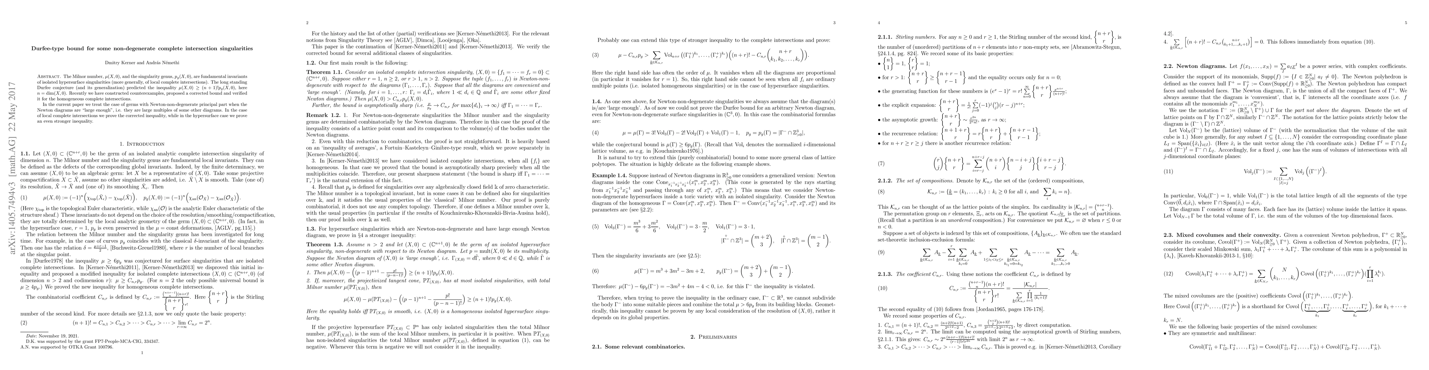 This paper corrects the Durfee conjecture for non-degenerate complete intersection singularities by proving a new inequality for the Milnor number and singularity genus, particularly focusing on cases where the Newton diagrams are sufficiently large. The authors verify the corrected bound for local complete intersections and establish an even stronger inequality for hypersurfaces.