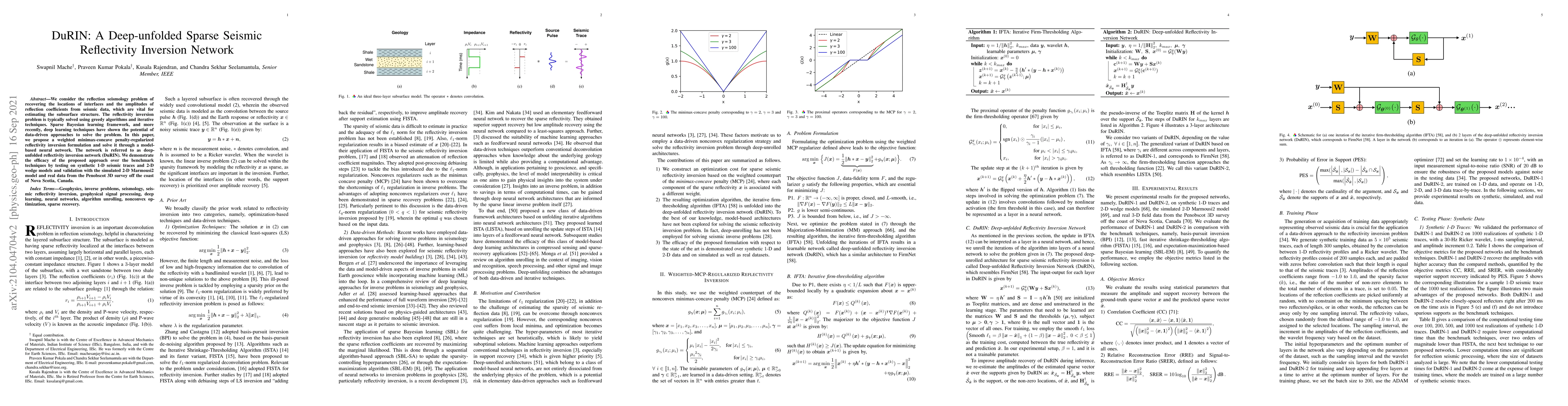 This paper proposes DuRIN, a deep-unfolded sparse seismic reflectivity inversion network, to recover subsurface structures using a weighted minimax-concave penalty-regularized formulation. The method outperforms benchmark techniques on synthetic and real seismic data.