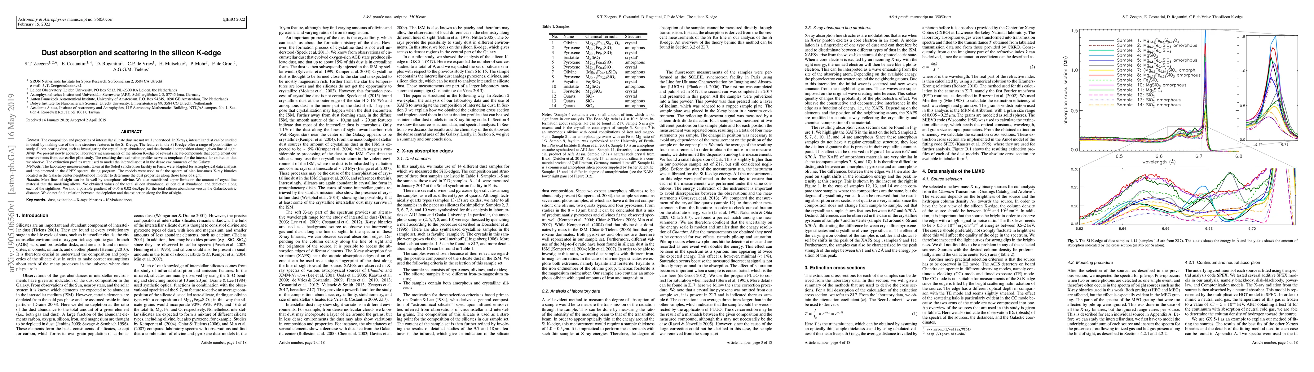This paper investigates interstellar silicate dust using silicon K-edge features in X-rays, presenting new laboratory measurements to model dust extinction profiles. The results suggest amorphous olivine dominates, with a possible gradient in total silicon abundance versus Galactocentric distance, but no correlation between silicon depletion and extinction.
