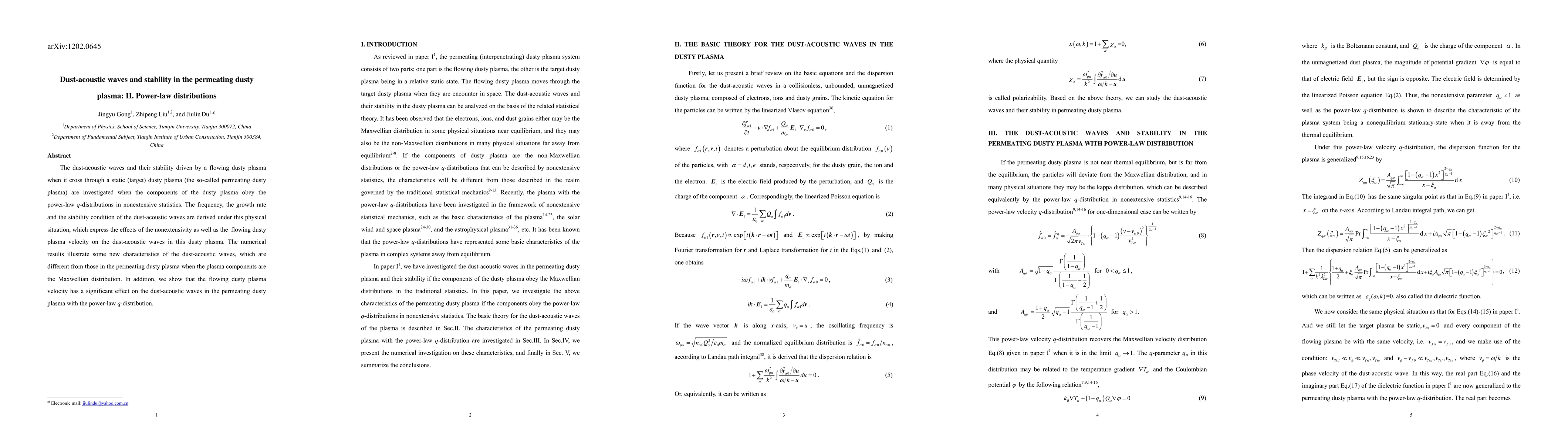 This paper investigates dust-acoustic waves and their stability in a permeating dusty plasma where plasma components follow power-law q-distributions. It derives frequency, growth rate, and stability conditions, highlighting the influence of nonextensive statistics and plasma flow velocity on these waves.