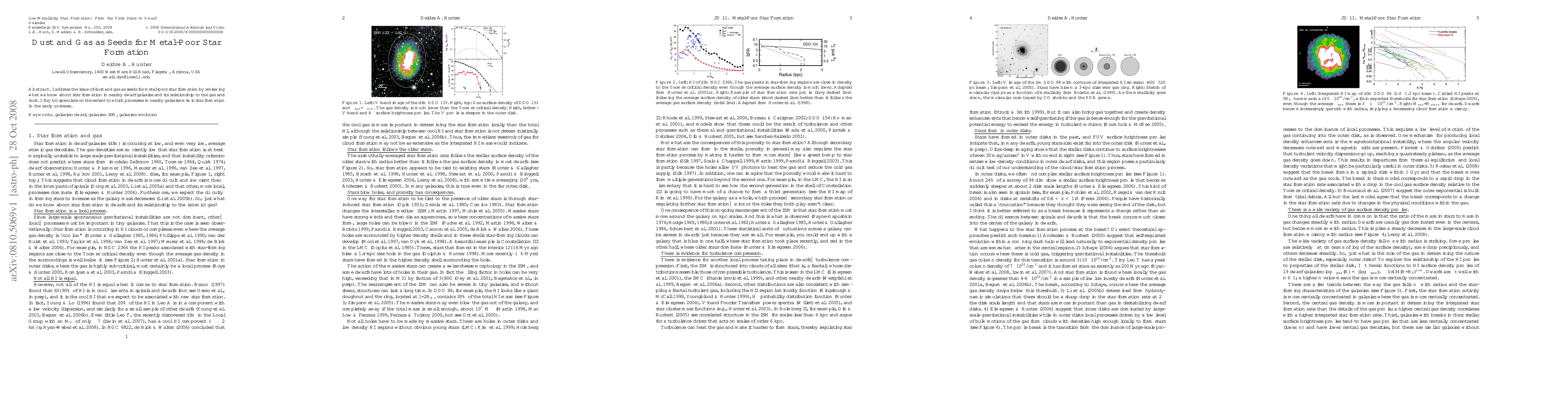 I address the issue of dust and gas as seeds for metal-poor star formation by reviewing what we know about star formation in nearby dwarf galaxies and its relationship to the gas and dust. I (try to) speculate on the extent to which processes in nearby galaxies mimic star formation in the early universe.