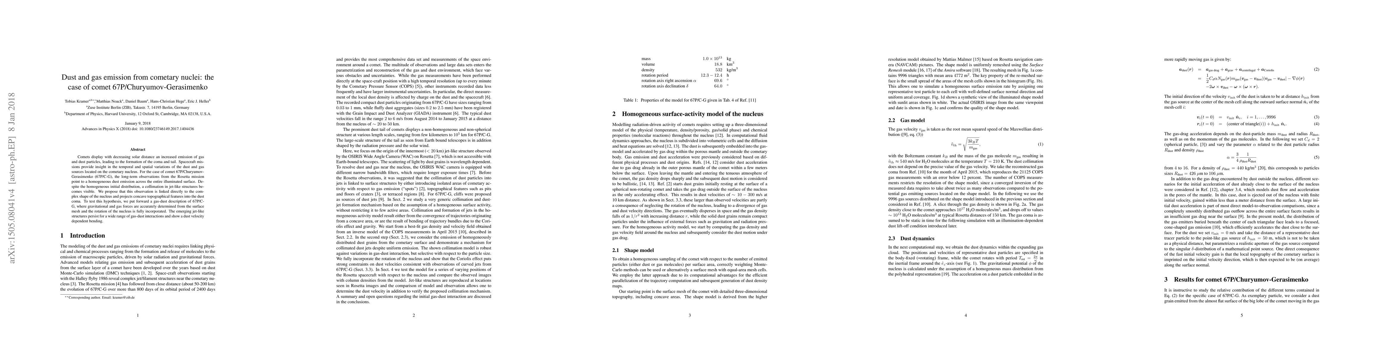 Comets display with decreasing solar distance an increased emission of gas and dust particles, leading to the formation of the coma and tail. Spacecraft missions provide insight in the temporal and spatial variations of the dust and gas sources located on the cometary nucleus. For the case of comet 67P/Churyumov-Gerasimenko (67P/C-G), the long-term observations from the Rosetta mission point to a homogeneous dust emission across the entire illuminated surface. Despite the homogeneous initial distribution, a collimation in jet-like structures becomes visible. We propose that this observation is linked directly to the complex shape of the nucleus and projects concave topographical features into the dust coma. To test this hypothesis, we put forward a gas-dust description of 67P/C-G, where gravitational and gas forces are accurately determined from the surface mesh and the rotation of the nucleus is fully incorporated. The emerging jet-like structures persist for a wide range of gas-dust interactions and show a dust velocity dependent bending.
