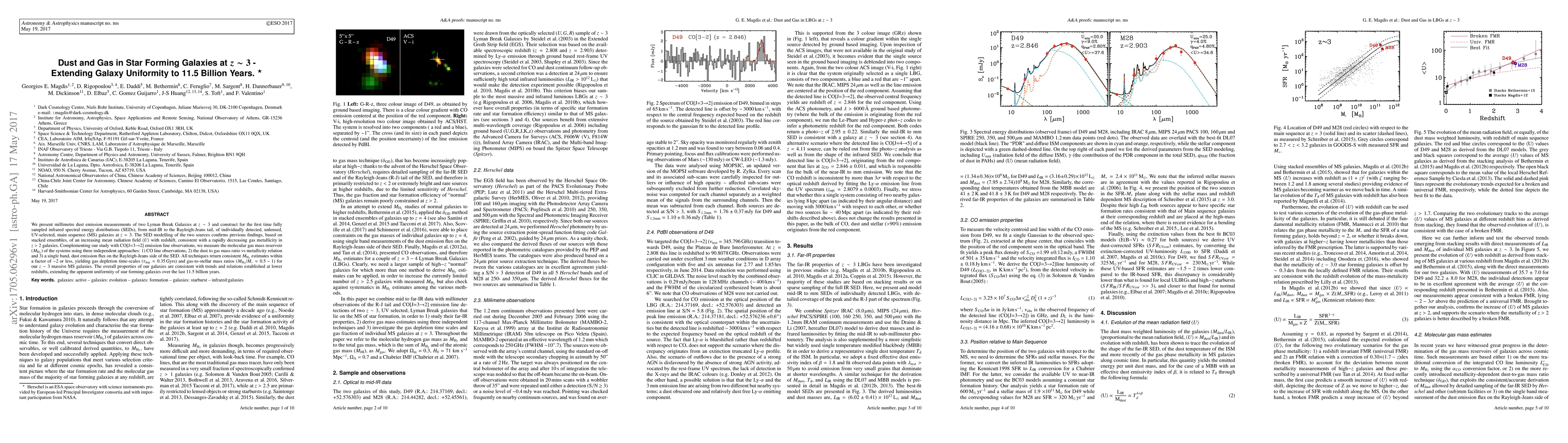 This paper measures millimetre dust emission and constructs infrared SEDs for two z~3 star-forming galaxies, revealing consistent molecular gas mass estimates and gas depletion timescales. The findings extend the uniformity of star-forming galaxies' properties observed at lower redshifts to 11.5 billion years ago.