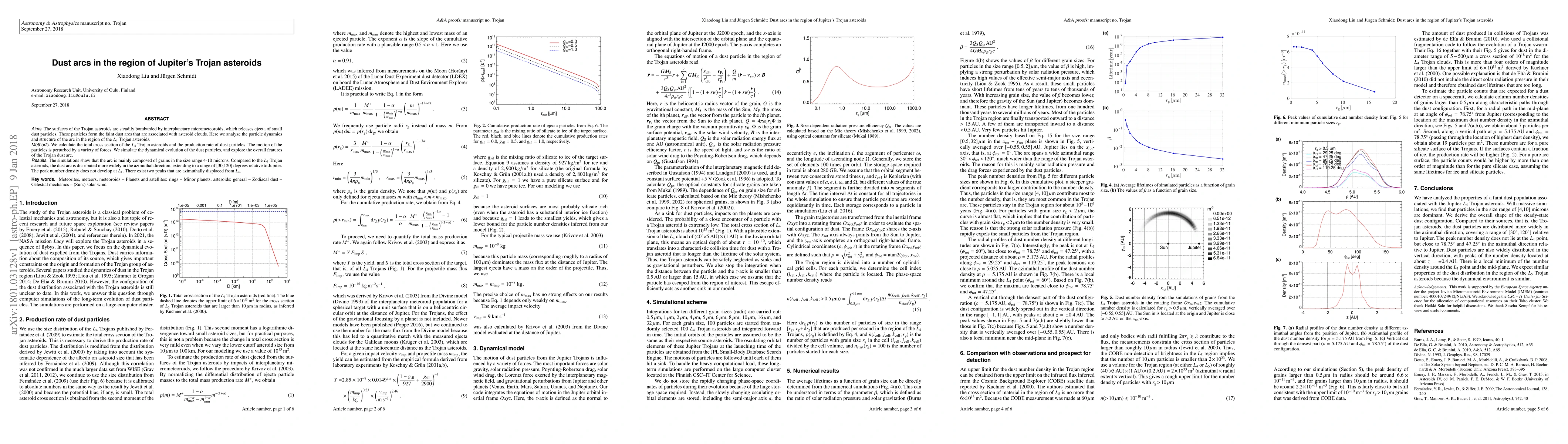 A study of dust arcs near Jupiter's Trojan asteroids reveals that they are mainly composed of 4-10 micron grains and extend to a wider azimuthal range than previously thought.