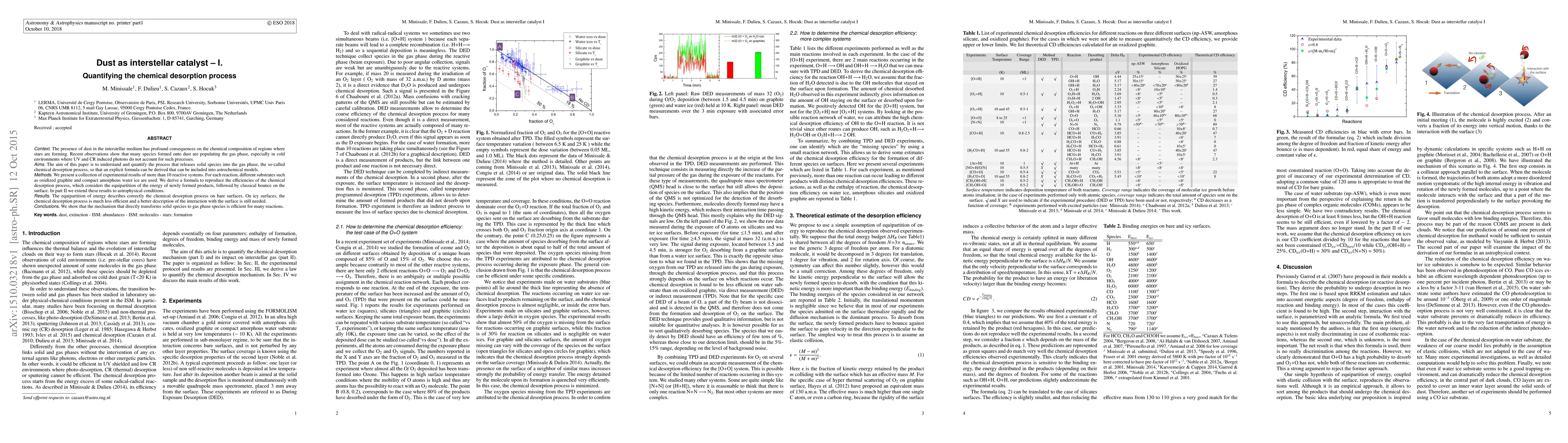 This paper quantifies the chemical desorption process, where solid species are released into the gas phase, crucial for understanding interstellar chemistry. Experimental results show that equipartition of energy effectively describes desorption on bare surfaces, but further study is needed for icy surfaces.